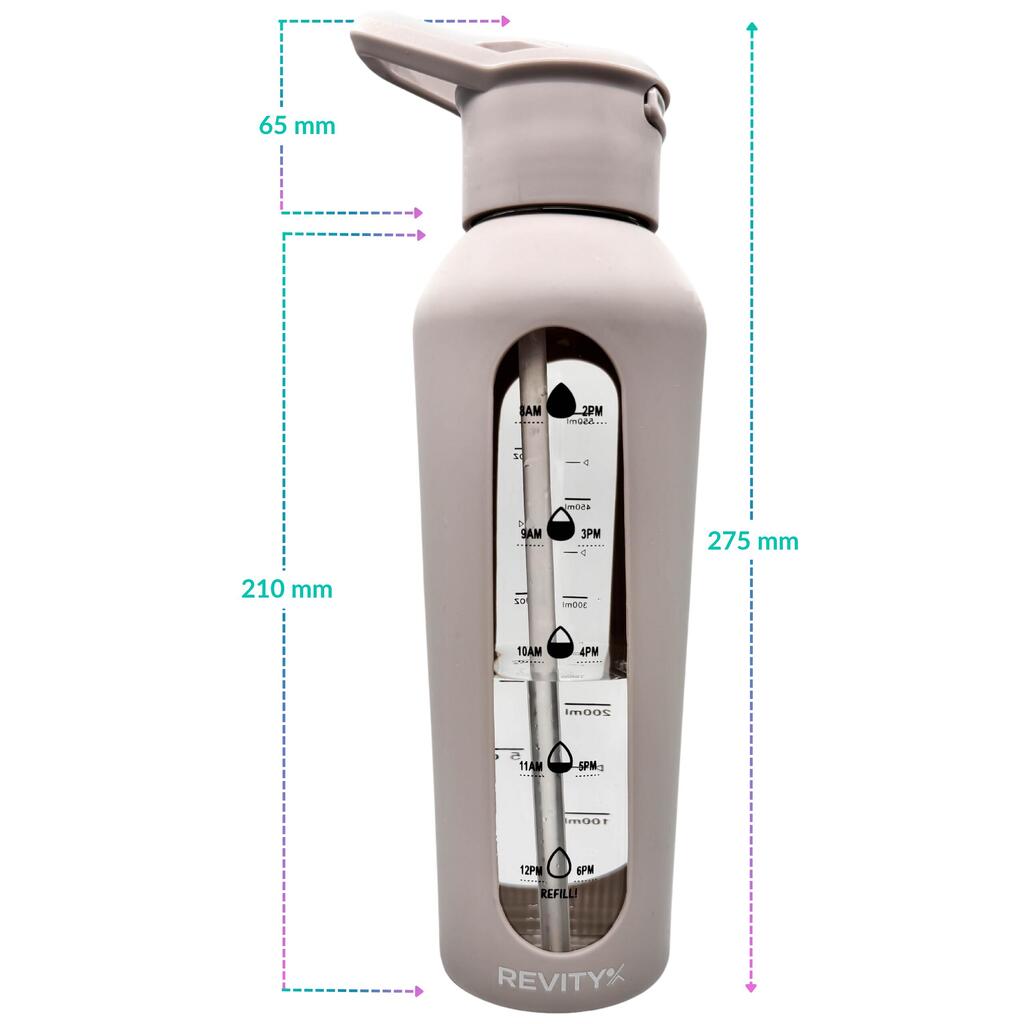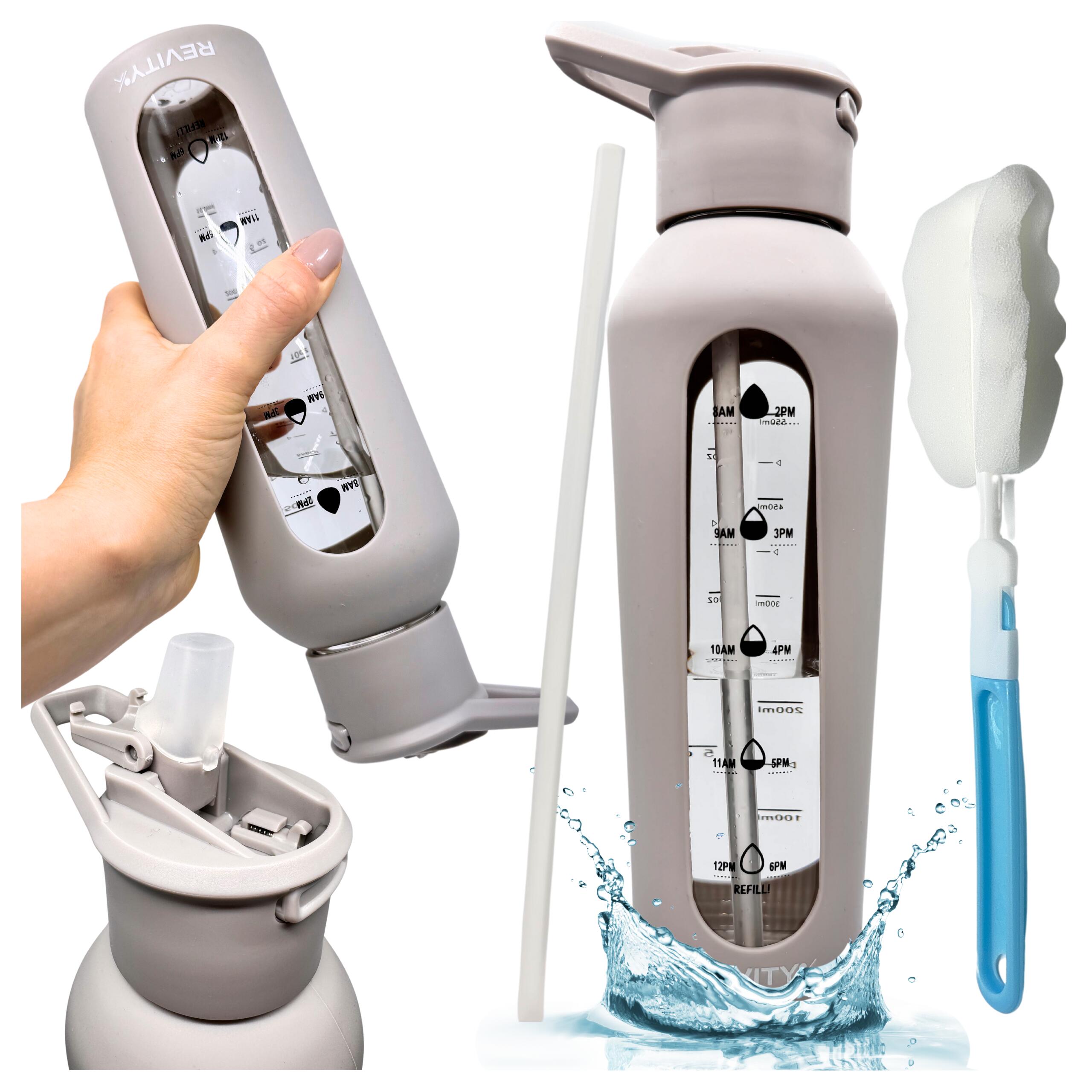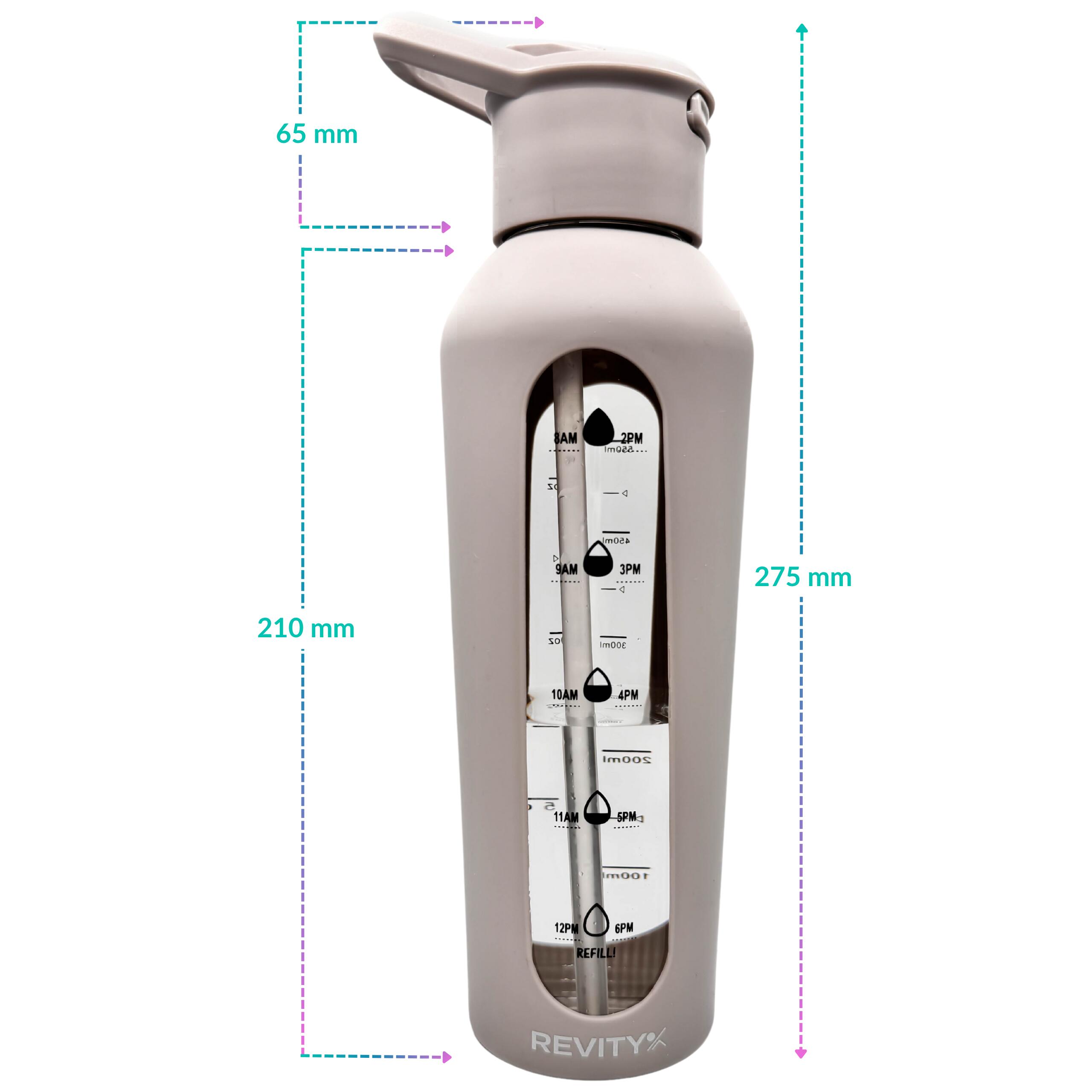 Motivational borosilicate glass sport bottle with time marks: shockproof silicone sleeve, quick-open lid with straw—drink without tilting. BPA-free.
