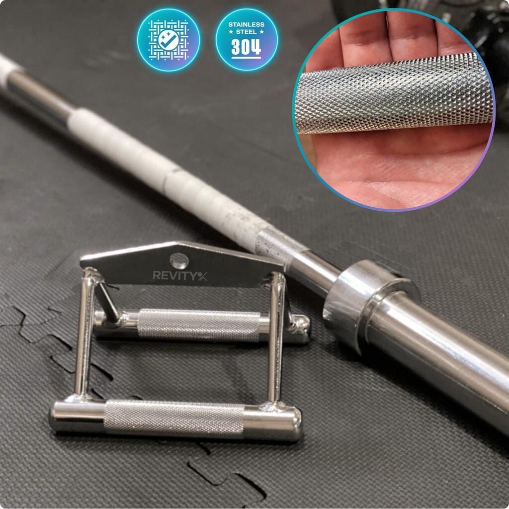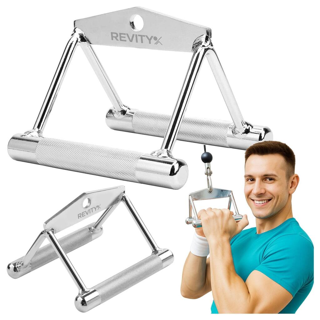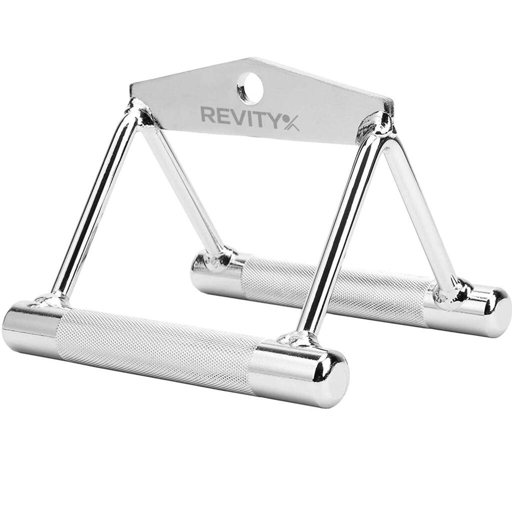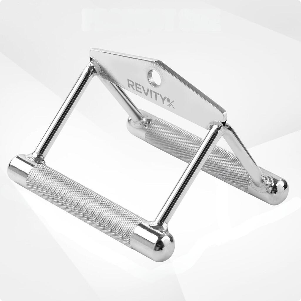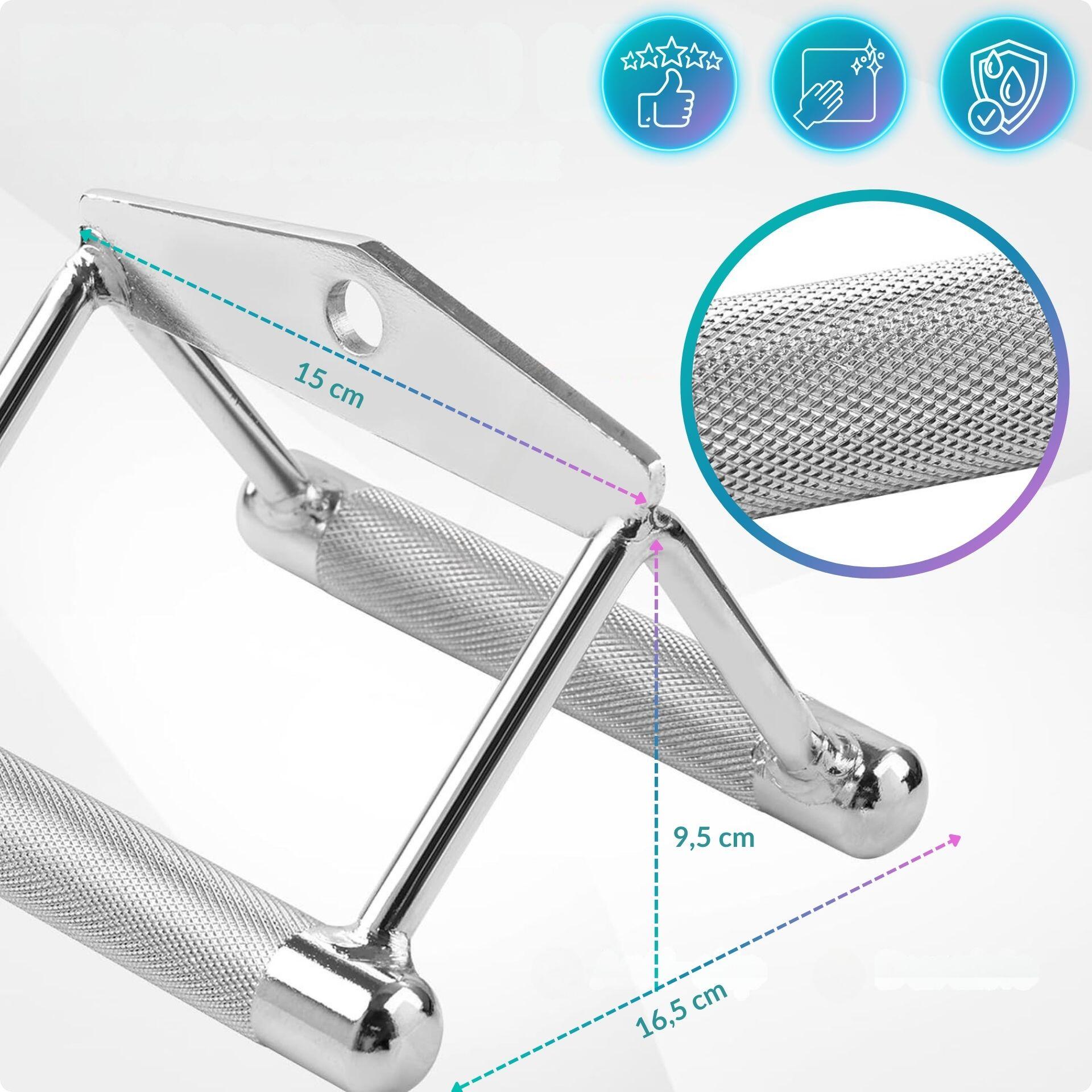 Stainless steel triangle V-handle for cable machine: knurled grip for comfortable, secure and stable pulling—even under heavy load.