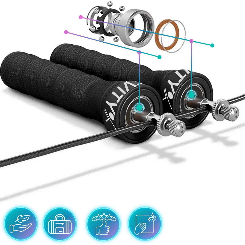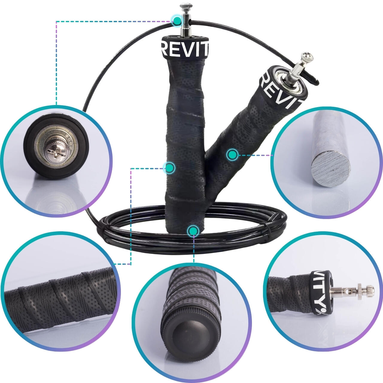 - **Solid bearings** — deliver smooth, fast skipping. They help you train effectively and move closer to your goals. No more tangled cable.