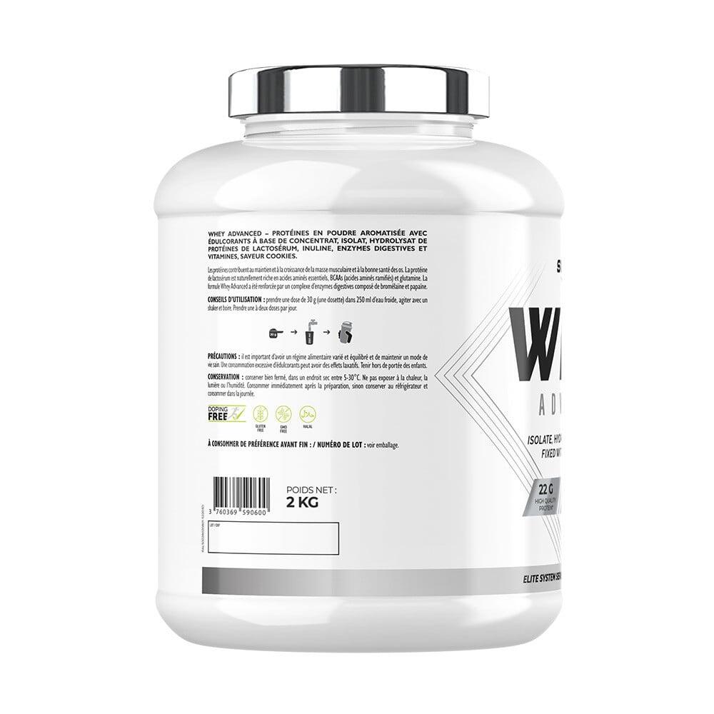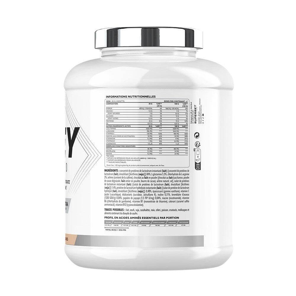 100% WHEY PROTEINE ADVANCED (2KG): Your ally in building lean muscleThis ultra-filtered whey protein, formulated by Superset Nutrition, is designed to help you build muscle. Naturally rich in BCAAs and glutamine, it combines whey concentrate with amino acids from isolate and hydrolysate, providing you with a high concentration of essential nutrients.22g of protein per dose, to help you build muscle.Only 117 kcal.Less than 1.4g of sugars, ideal for building lean body mass.Ultra-filtered formula for improved nutrient purity and assimilation.Rich in BCAA, to support your amino acid needs.2 in 1: Maximum performance and optimized digestion100% WHEY PROTEINE ADVANCED (2KG) has a higher biological value than conventional whey, which may improve your body's utilization of protein. It also contains cyanocobalamin, which helps build red blood cells and maintain normal muscle function...Vitamin B12, to help your sporting performance.Digestive enzymes and prebiotics for digestive comfort.For body-builders, endurance athletes and athletes in the definition phase,But also beginners and advanced athletes looking for an easily digestible whey,Or people concerned about their nutrition. Tasty fragrancesChocolateBanana SplitVanillaChocolate HazelnutStrawberry YogurtCookiesPassion Chocolat BlancStrawberry Mango