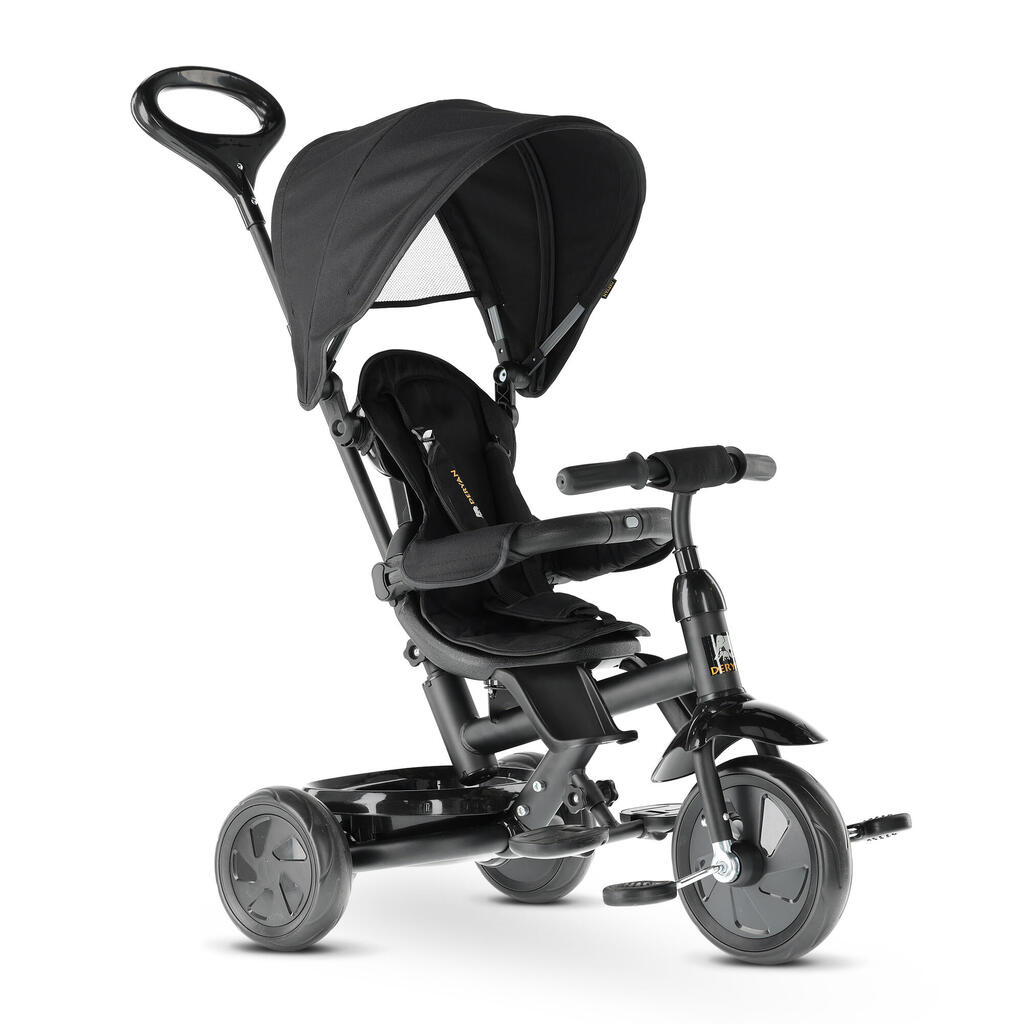 **Ready for adventure with your little one? Discover the versatile and comfortable DERYAN Adventurer tricycle!** Ideal for learning to ride while playing, this tricycle offers comfort, safety, and flexibility on every ride. With the DERYAN Adventurer, you give your child the perfect start to their cycling journey. Thanks to the swivel seat, you can choose whether your child faces you or the world. The high backrest, padded seat, and 5-point harness ensure ultimate comfort and safety. With handy extras like a UV-protective sun canopy, telescopic push handle, and foldable footrests, you're always ready for any trip. **Advantages:** ✓ Swivel seat for flexible use ✓ Comfortable seating area with adjustable backrest and removable footrest ✓ Sun canopy with UV protection against sun and weather ✓ Easy to operate thanks to telescopic push handle and locking system ✓ Non-slip pedals, rear brakes, and foldable footrests This tricycle grows with your child and is designed with ease of use for both parent and child in mind. Ideal for walks, outings, or just a ride through the park. **Product specifications:** - Swivel seat - 5-point safety harness - Foldable central and middle footrests - Telescopic push handle - Sun canopy with UV protection - Backrest with three positions - Weight: approx. 8 kg