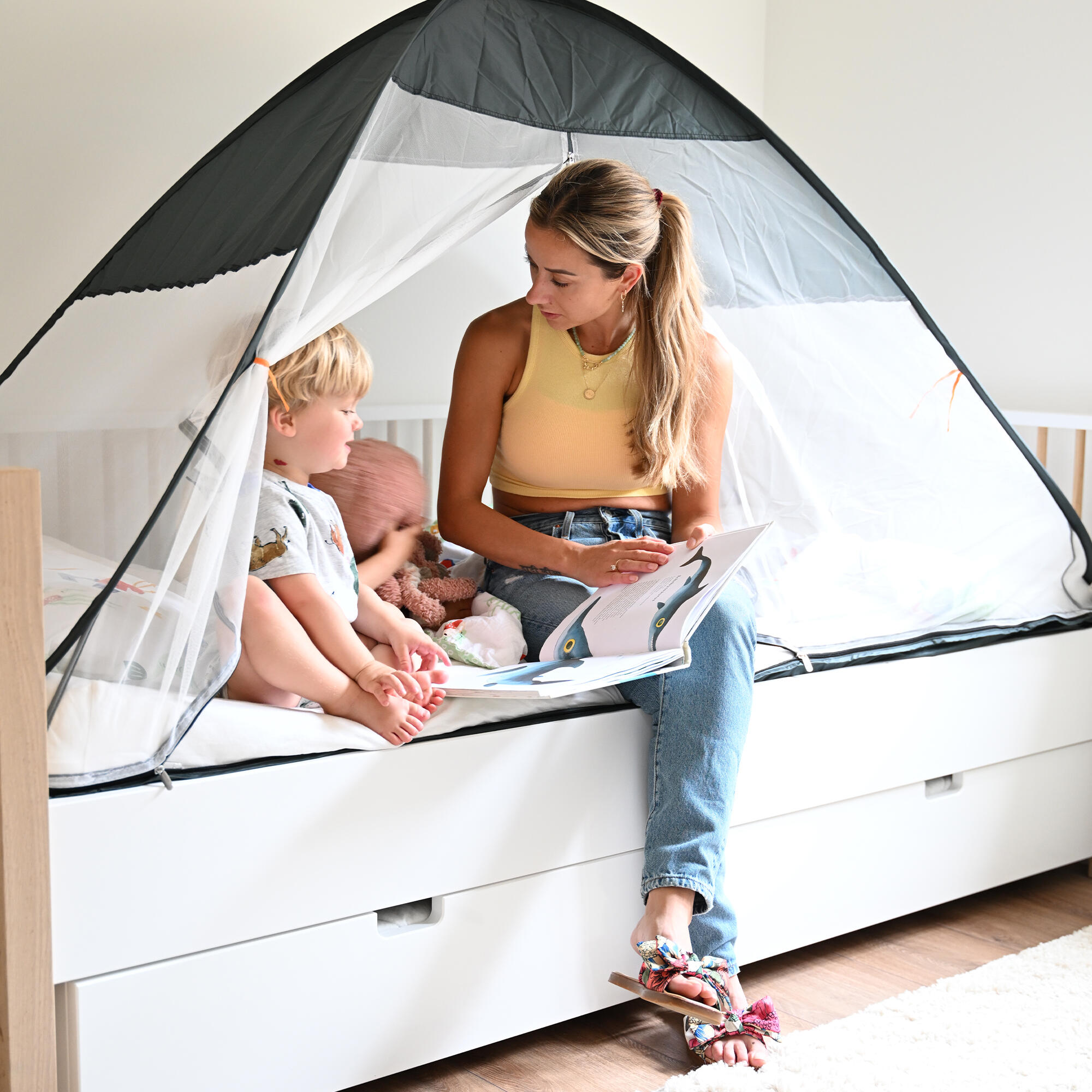The DERYAN mosquito net bed tent, with its handy pop-up system, is a compact bed net that effectively protects you from mosquitoes and other biting insects while you sleep.