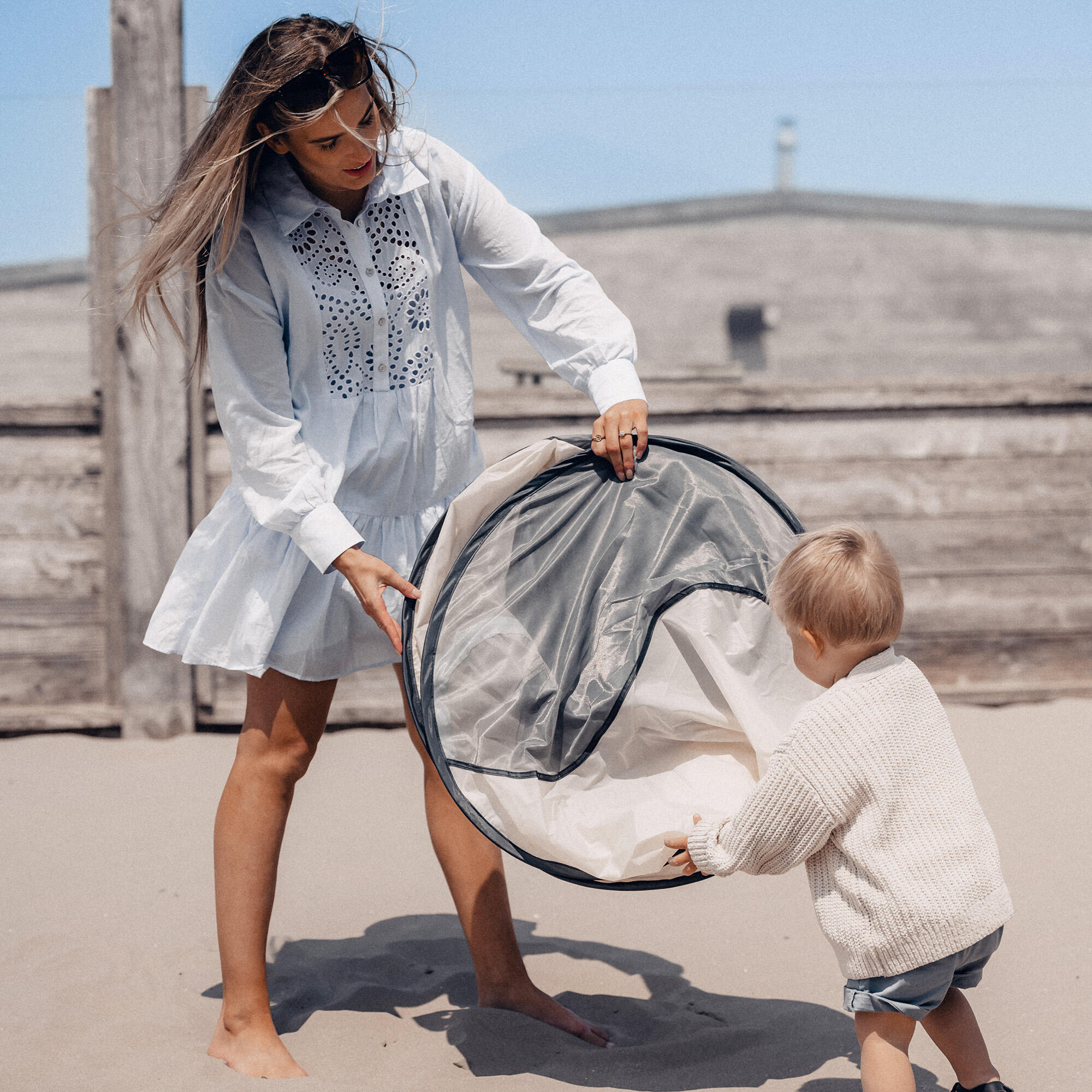 The DERYAN beach tent protects your child while playing and sleeping on the beach.