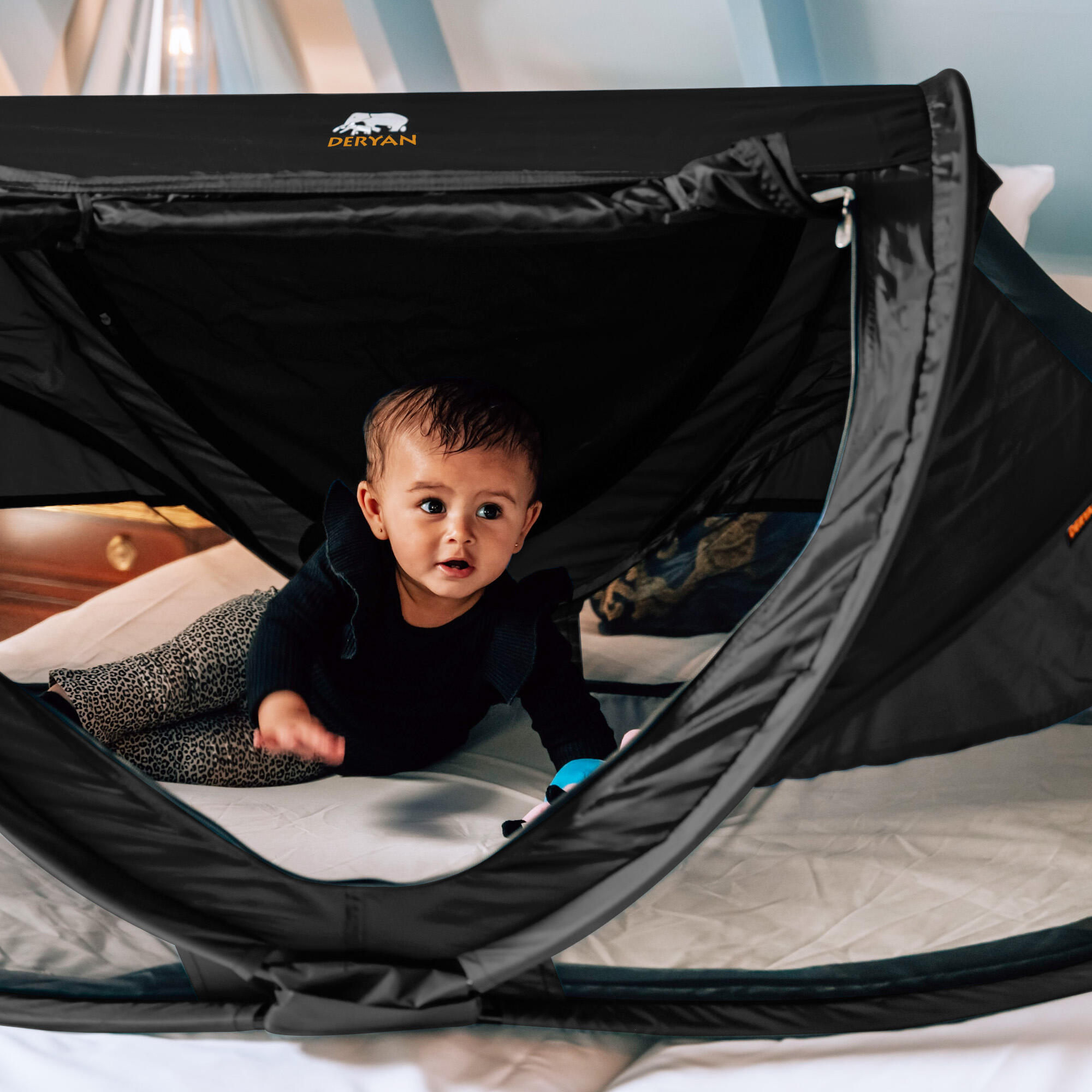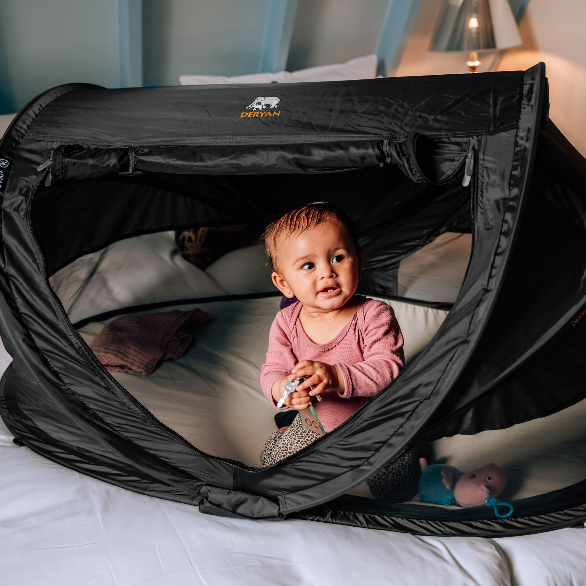 The DERYAN Peuter Luxe is the ideal solution and replacement for the heavy travel cot. Let nothing stand in your way with this compact, lightweight, and pop-up travel tent.