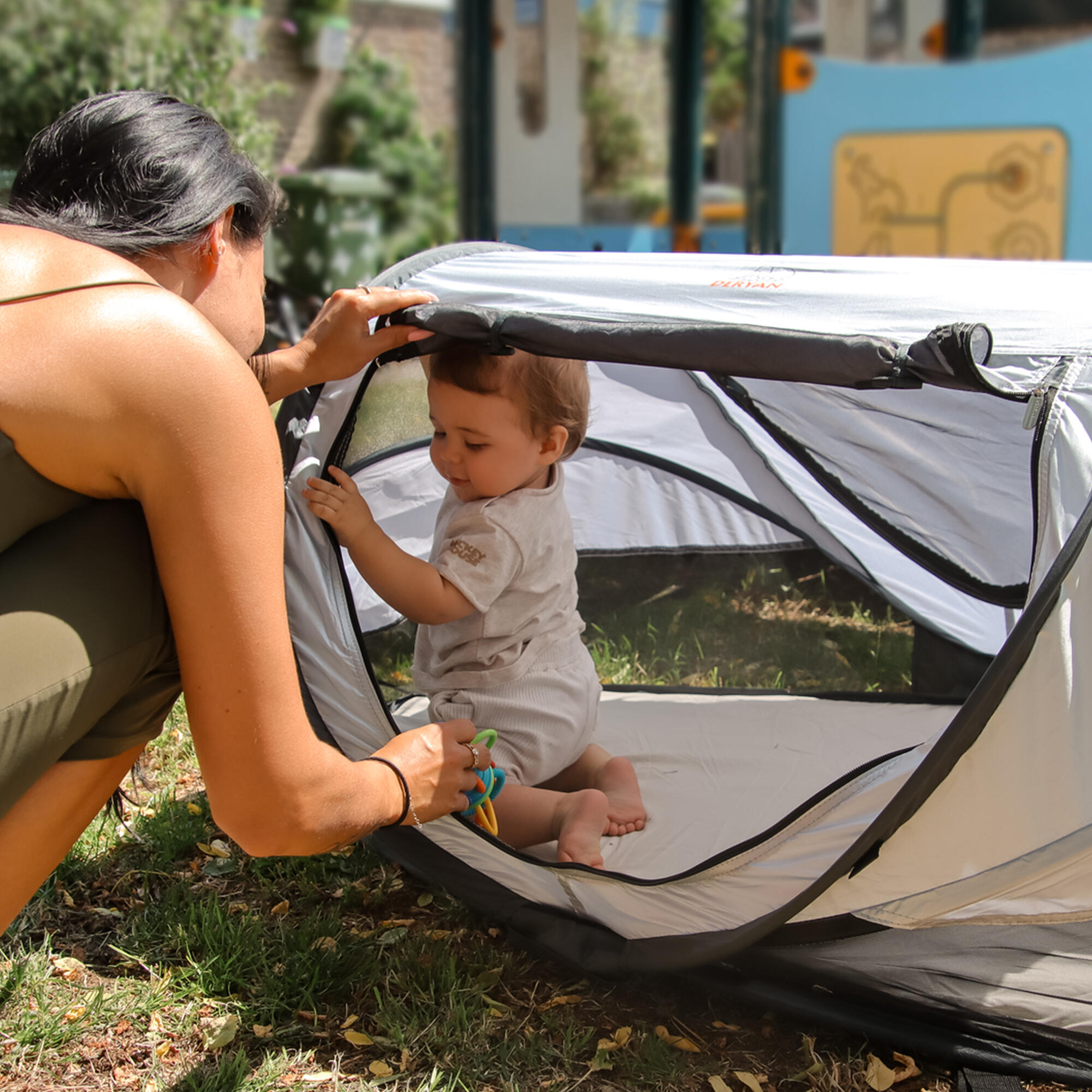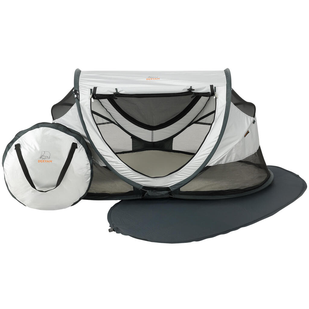 The DERYAN Peuter Luxe is the ideal solution and replacement for the heavy travel cot. Let nothing stand in your way with this compact, lightweight, and pop-up travel tent.