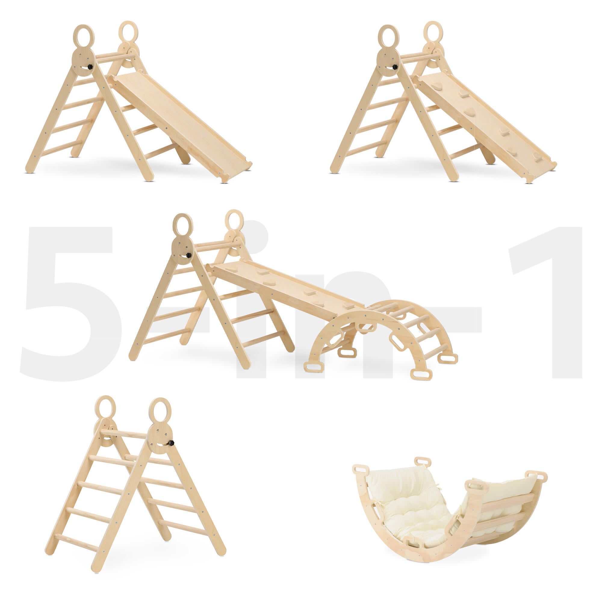 Deryan Foldable Triangle with Climbing Arch, Slide and Cushion - Montessori Gym