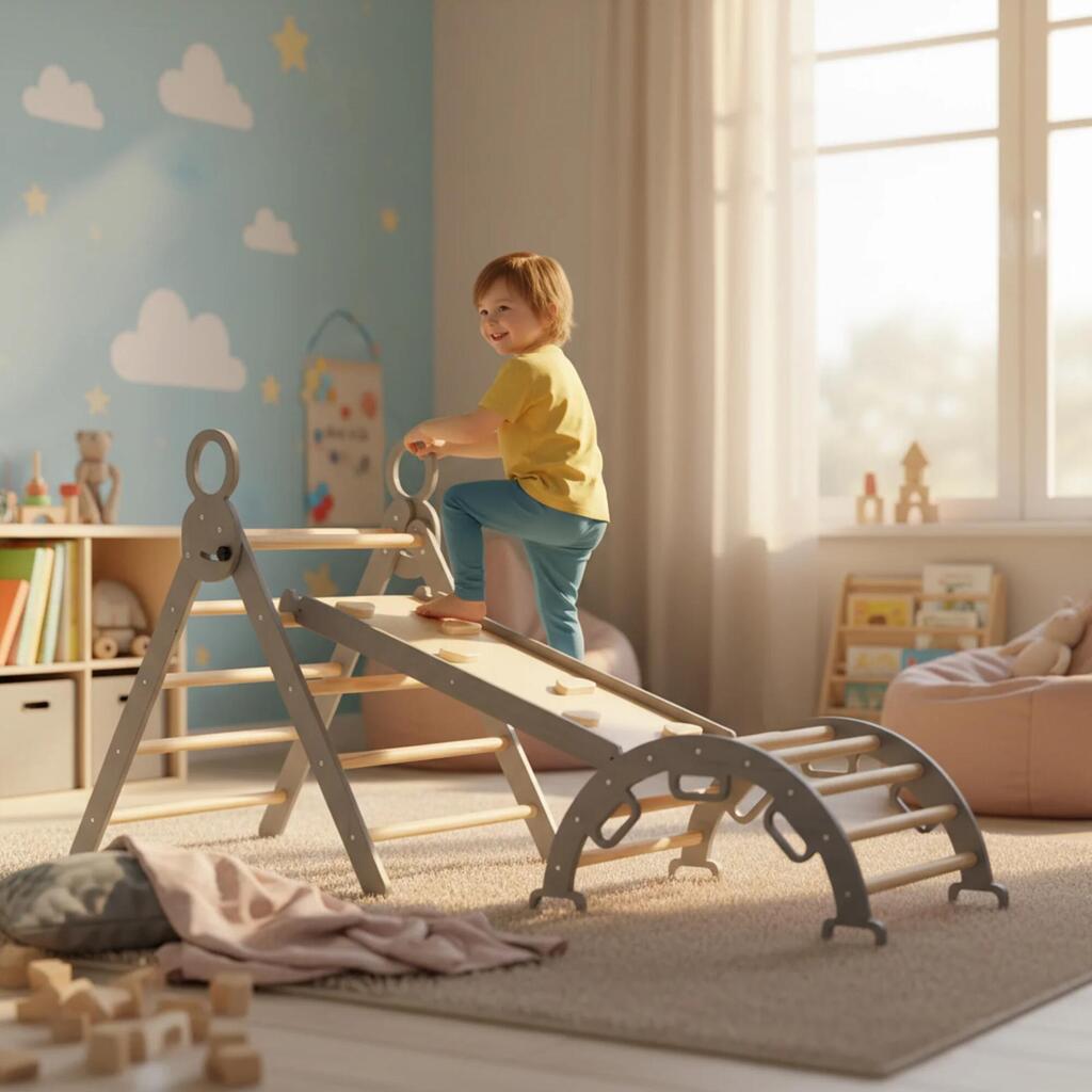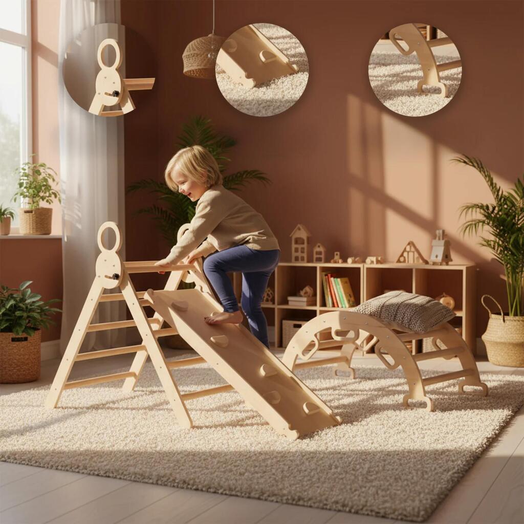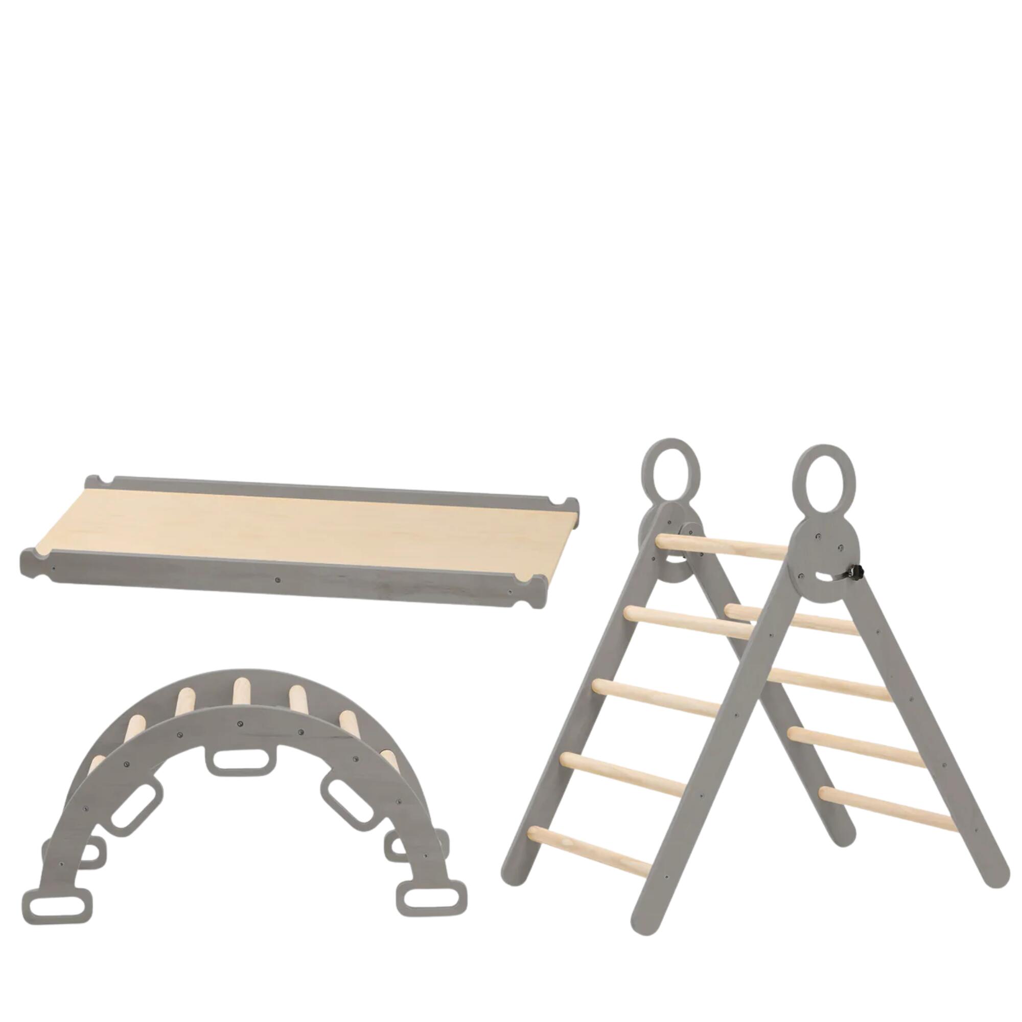 Deryan Folding Climbing Triangle with Arch and Slide – Montessori Gym – Grey