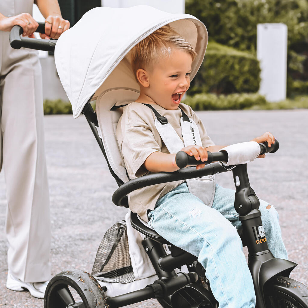 Ready for an adventure with your little one? The DERYAN Explorer is the ideal tricycle: fully foldable, 360-degree rotatable, and equipped with a convenient push bar.