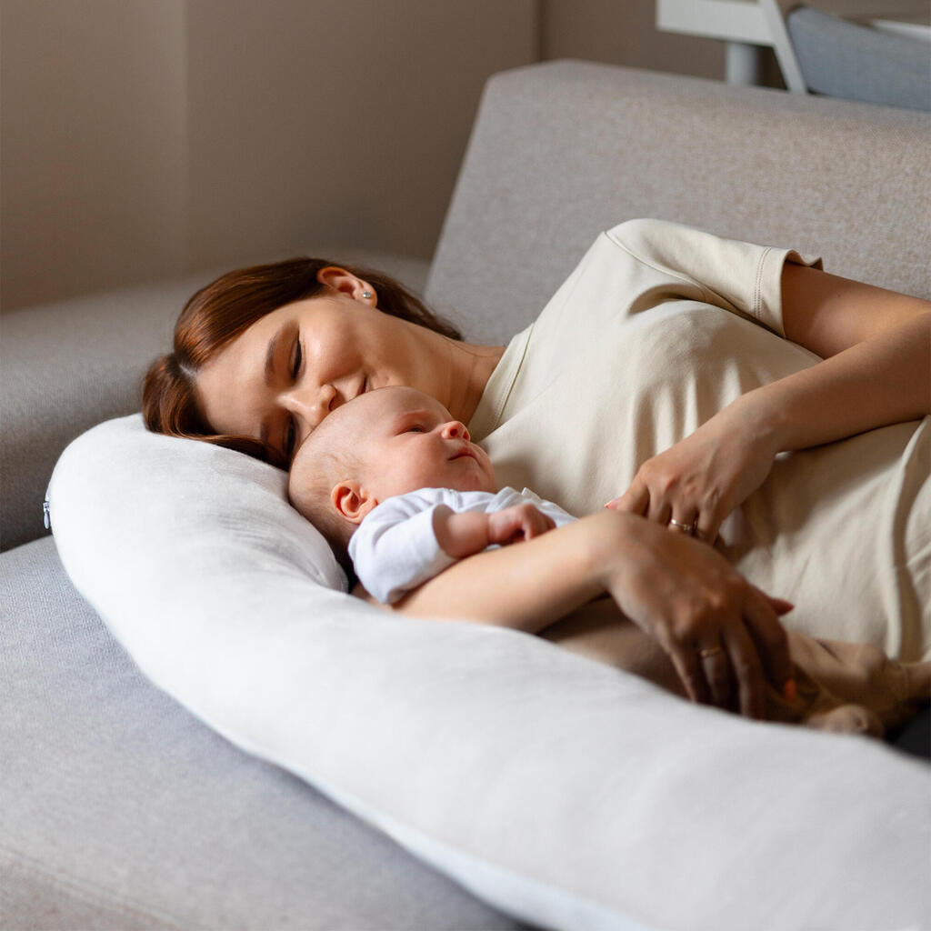 This multifunctional nursing pillow in fresh white is an indispensable must-have for every (expecting) parent.