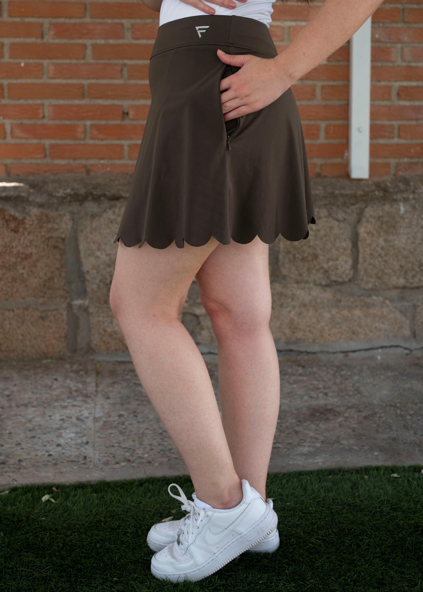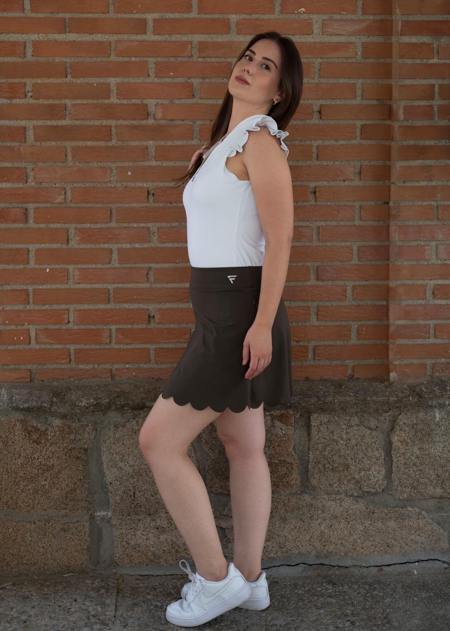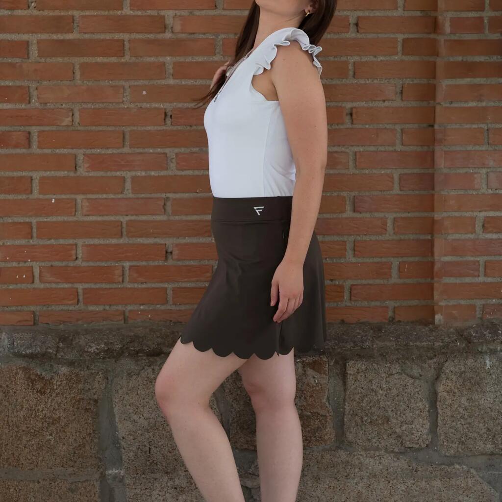 High-waisted women’s golf skirt with 360° stretch, a sculpting fit, and feminine scallop detailing. Quick-drying, supportive, and designed for confidence on and off the course.