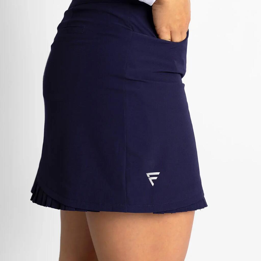A high-waisted pleated golf skirt with soft inner shorts, four discreet pockets, and a flattering performance fit. Elegant, supportive, and designed for confident play on every swing.