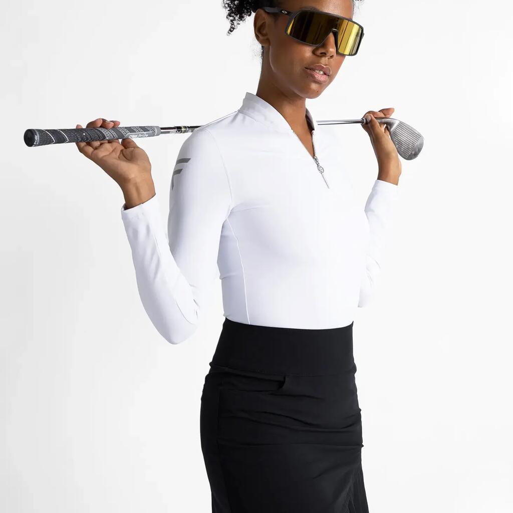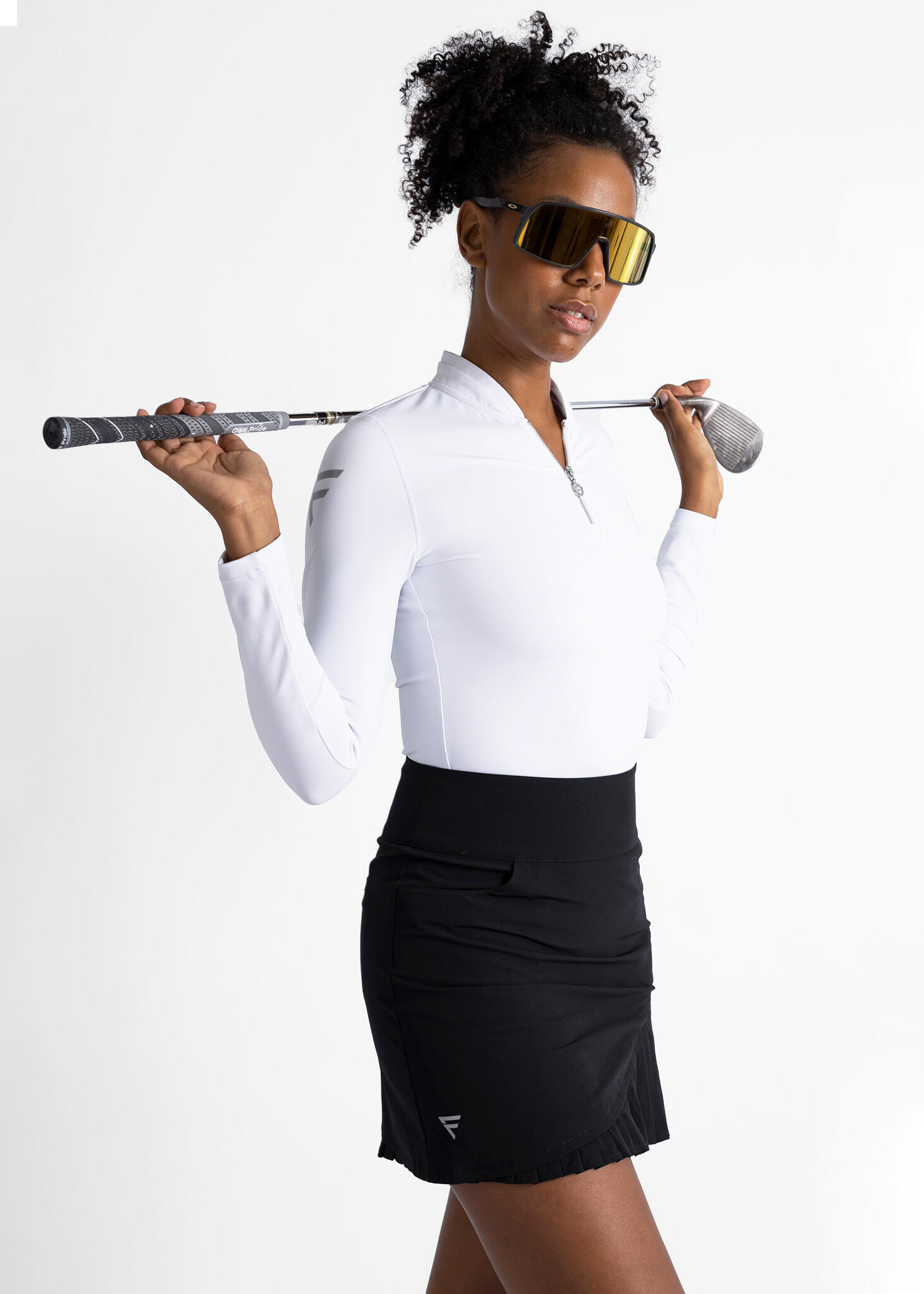 A high-waisted pleated golf skirt with soft inner shorts, four discreet pockets, and a flattering performance fit. Elegant, supportive, and designed for confident play on every swing.
