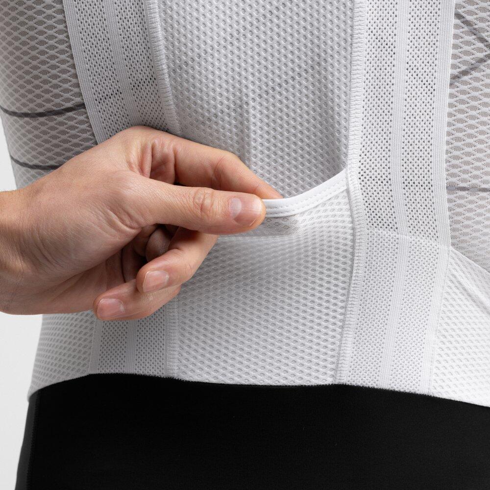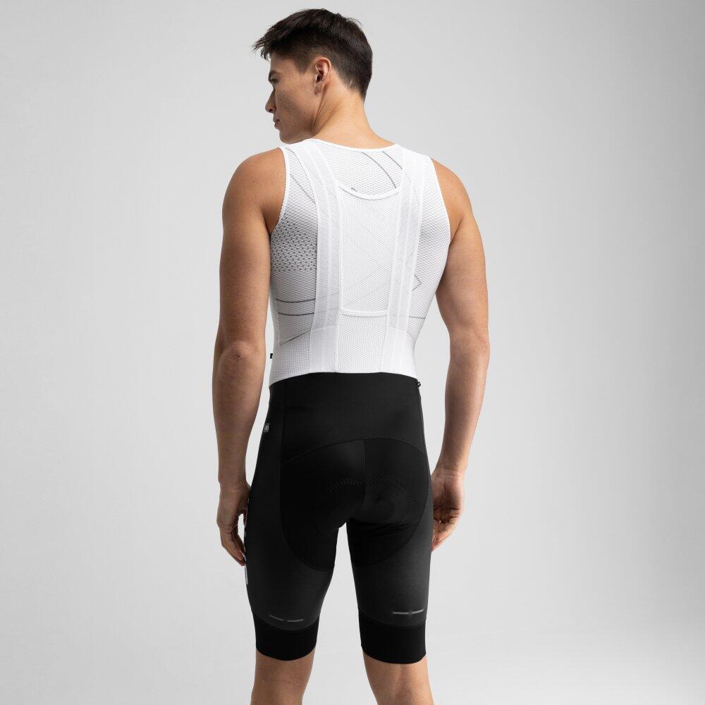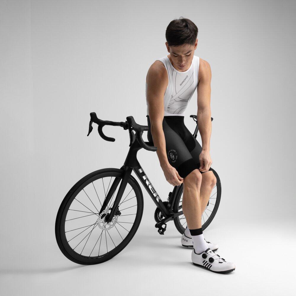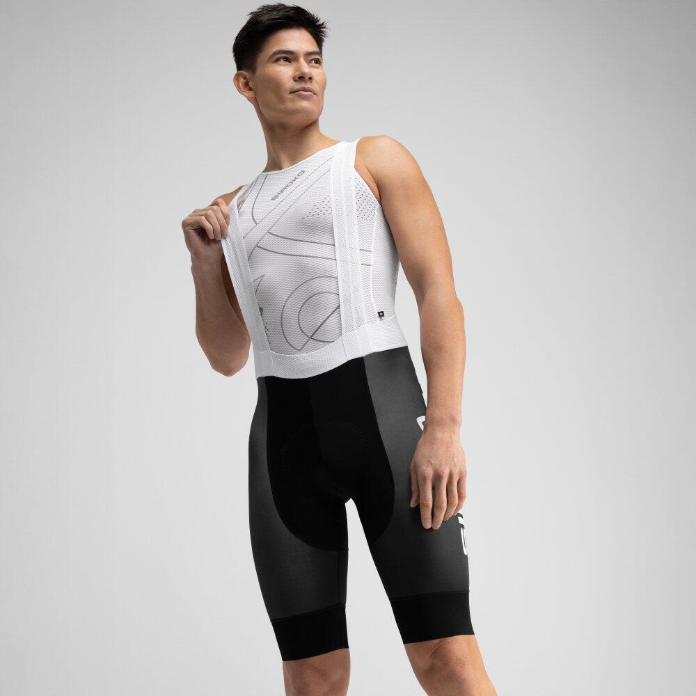 SC BX Pro Esférico cycling bib shorts with Elastic Interface® double density (60-120kg/m³) chamois. Elastic suspenders, mesh panel on the back, and flat seams. Official Real Sporting de Gijón x Siroko