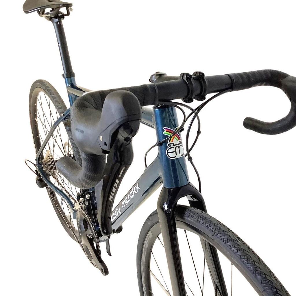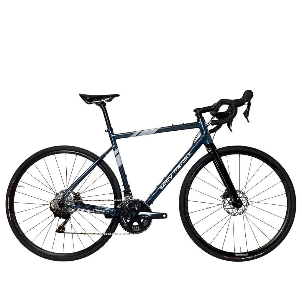 The Eddy Merckx Pevele bicycle is in EXCELLENT condition (a great deal). It shows no cosmetic signs of use. There are no dents or scratches. This bicycle has a Shimano 105 2x11 groupset with hydraulic disc brakes. These pre-owned bicycles are technologically innovative, specially designed for maximum fun with the authentic spirit of road biking: friendly competition, technical trails, long rides, the occasional race, lots of laughs, and many adventures… pure road biking!