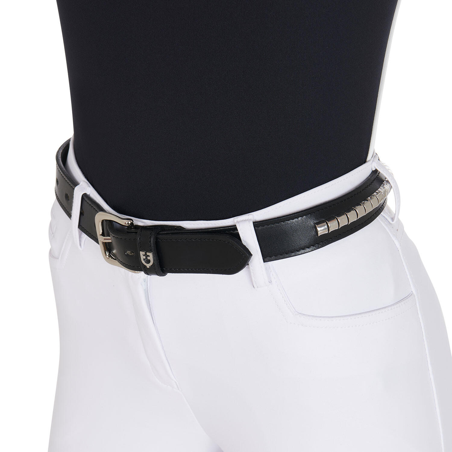 Horse riding leather belt with silver clincher