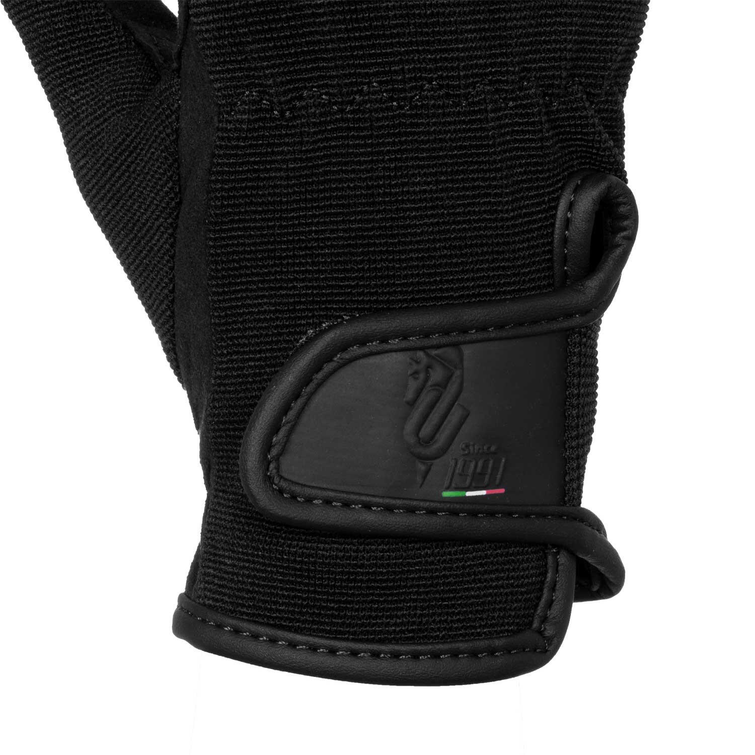 Kids' riding gloves in Amara synthetic leather with elastic inserts and Velcro closure.