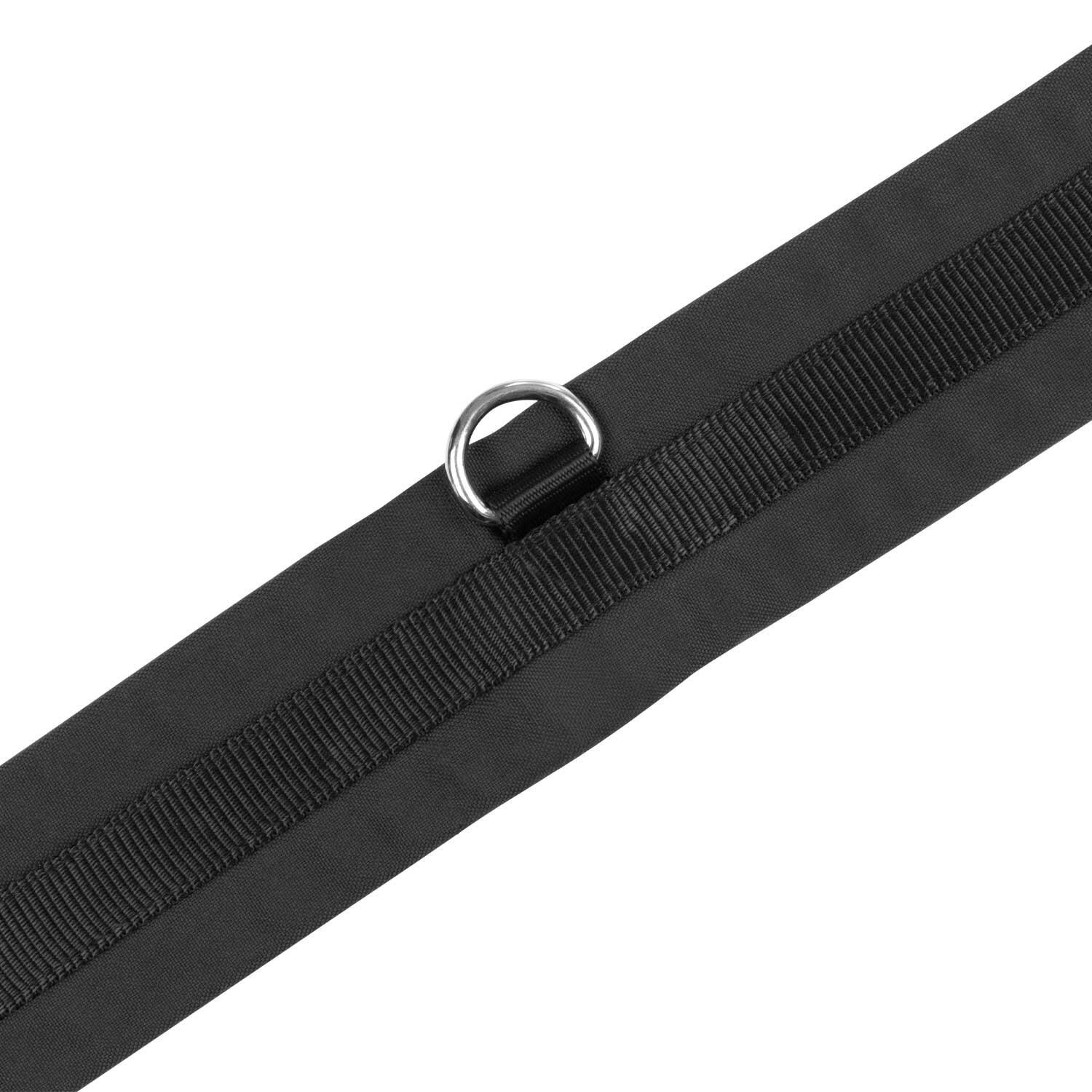 English riding girth in fabric with elastic bands, stainless steel buckles and central ring.