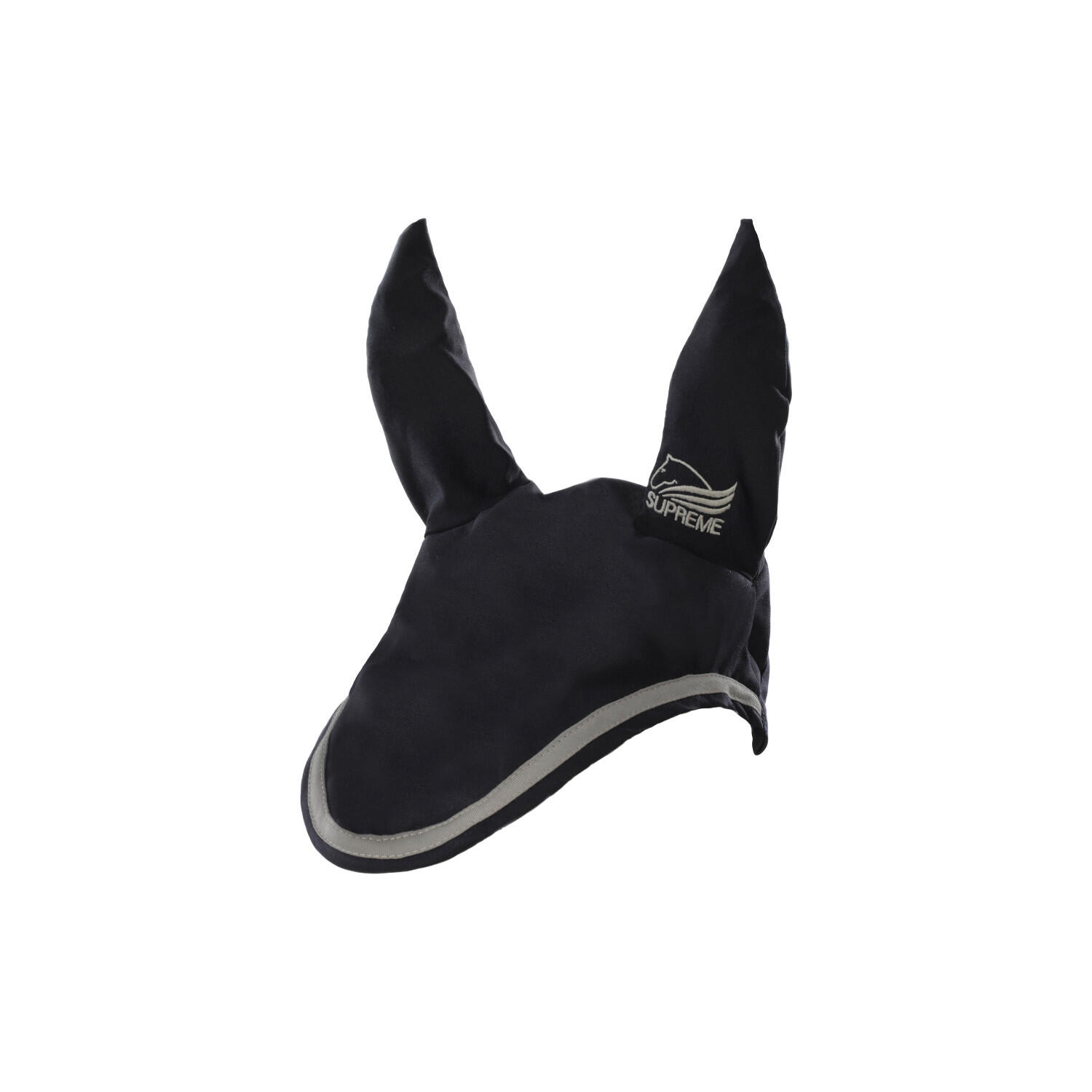 Pony fly veil in soft cotton with contrasting piping. It guarantees an excellent fit and maximum comfort.