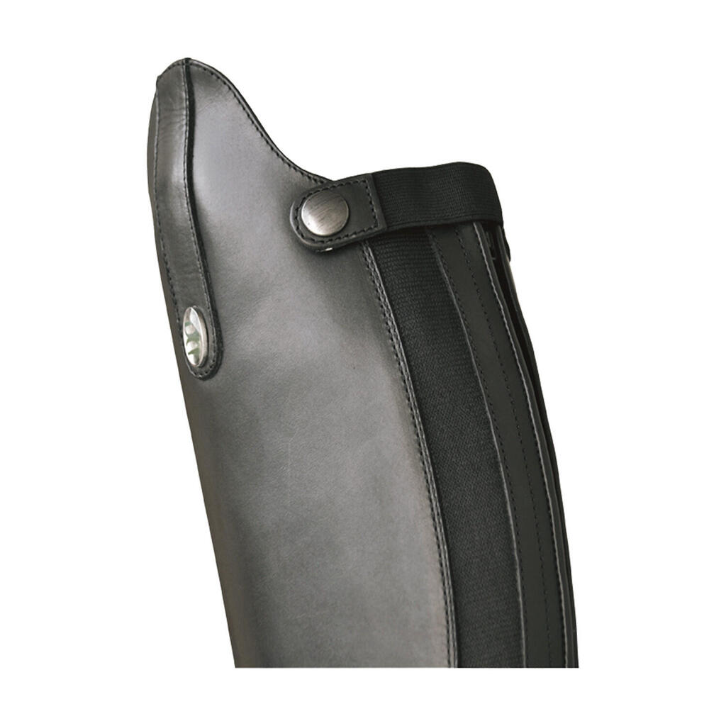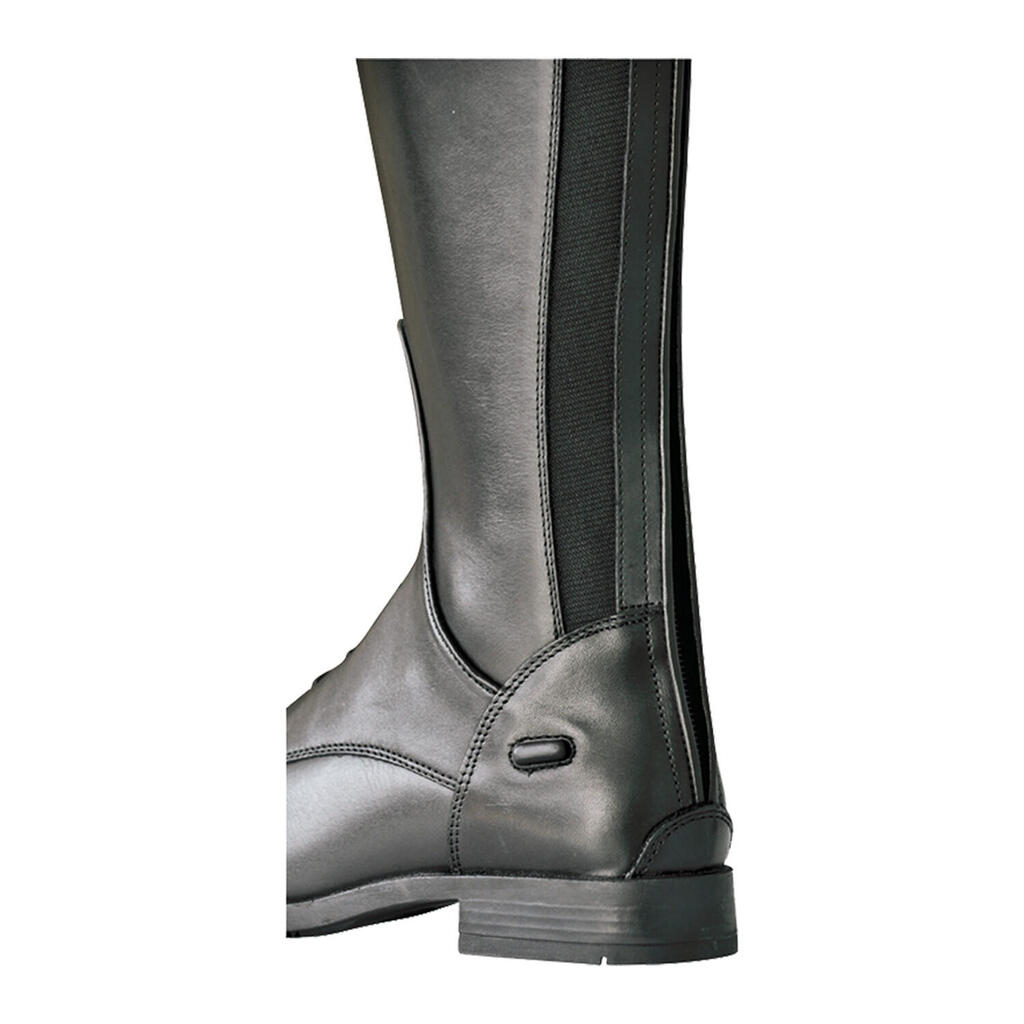 Competition riding boots in leather with laces and rear zip equipped with elastic support. Leather lining, leather insole and technical rubber sole.