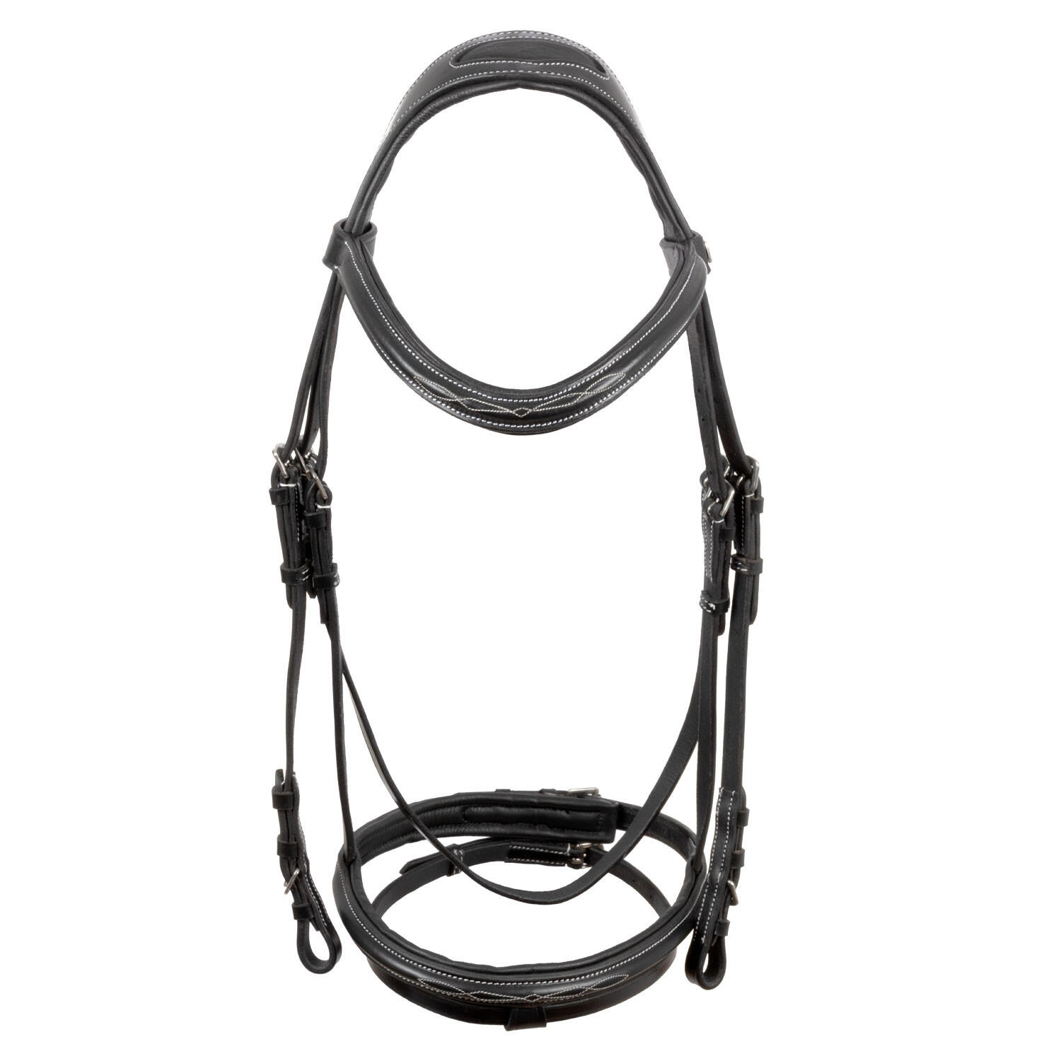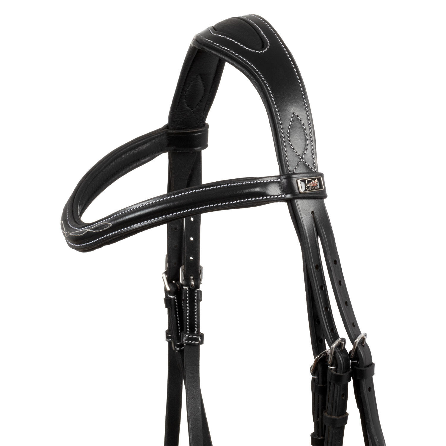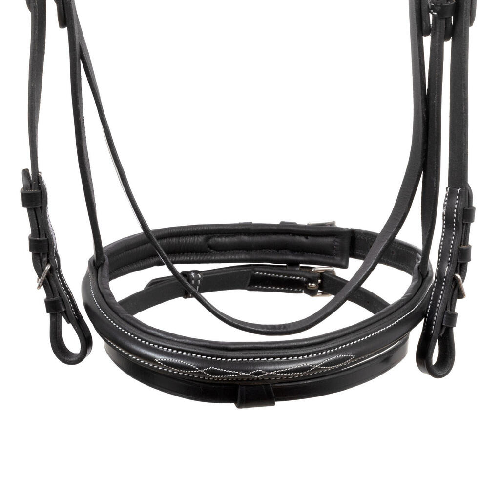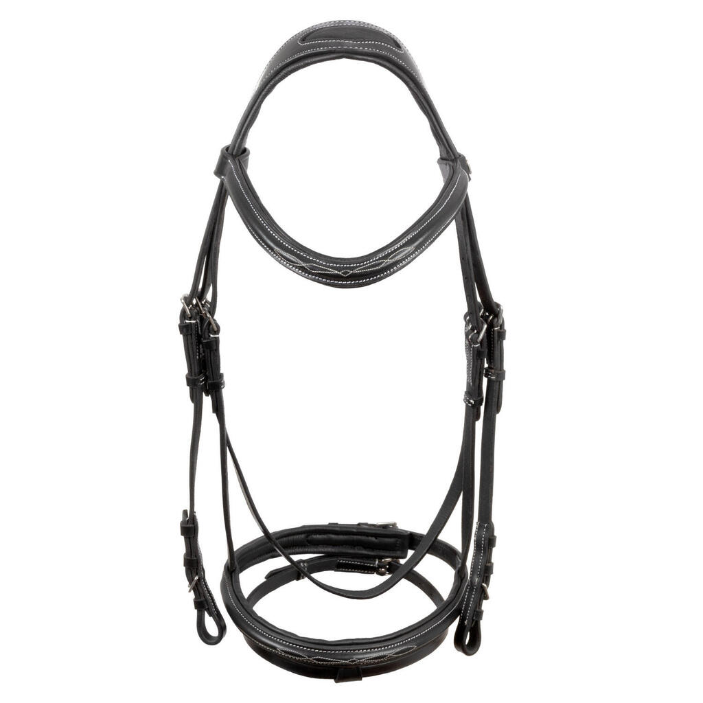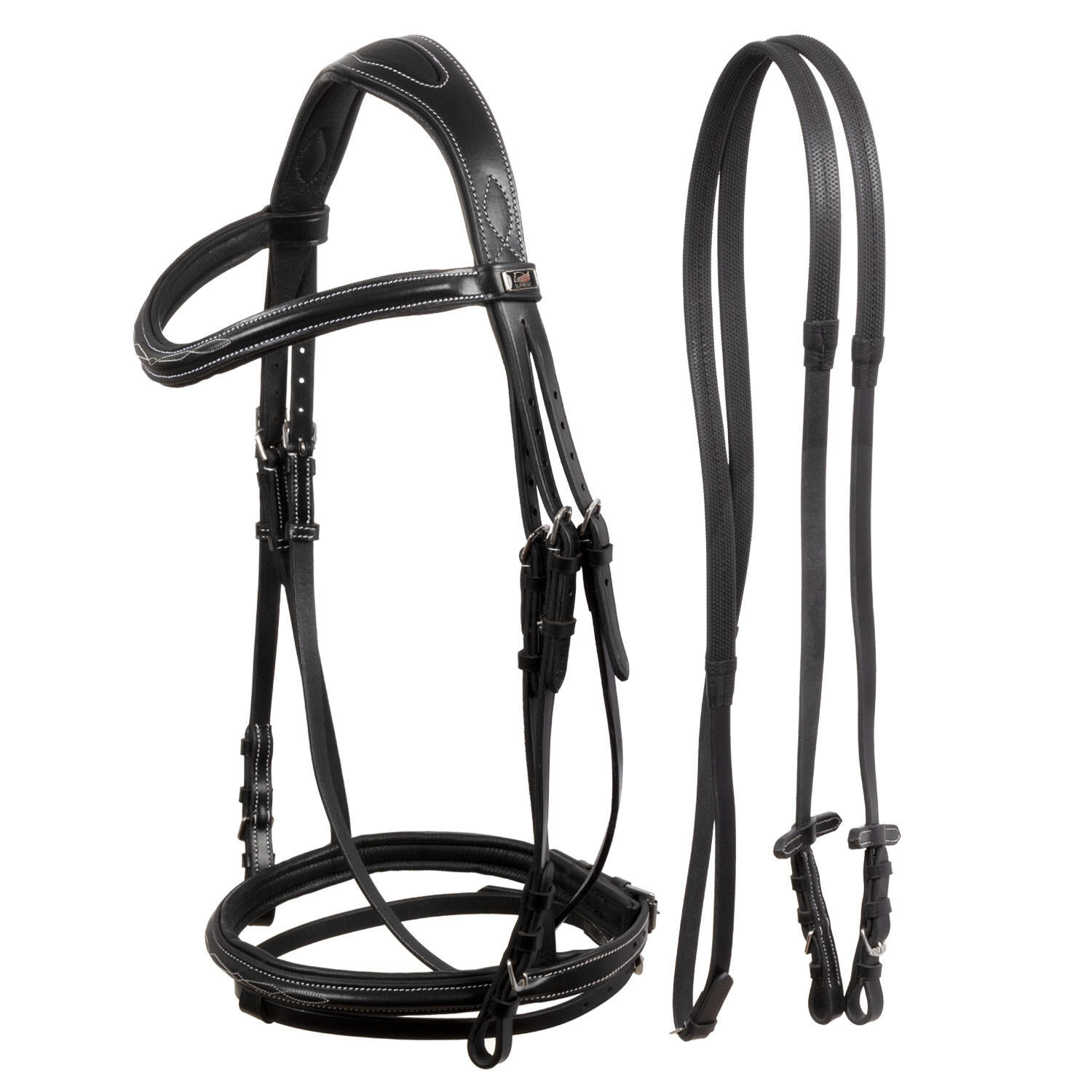 Headstall with contrasting stitching and reins