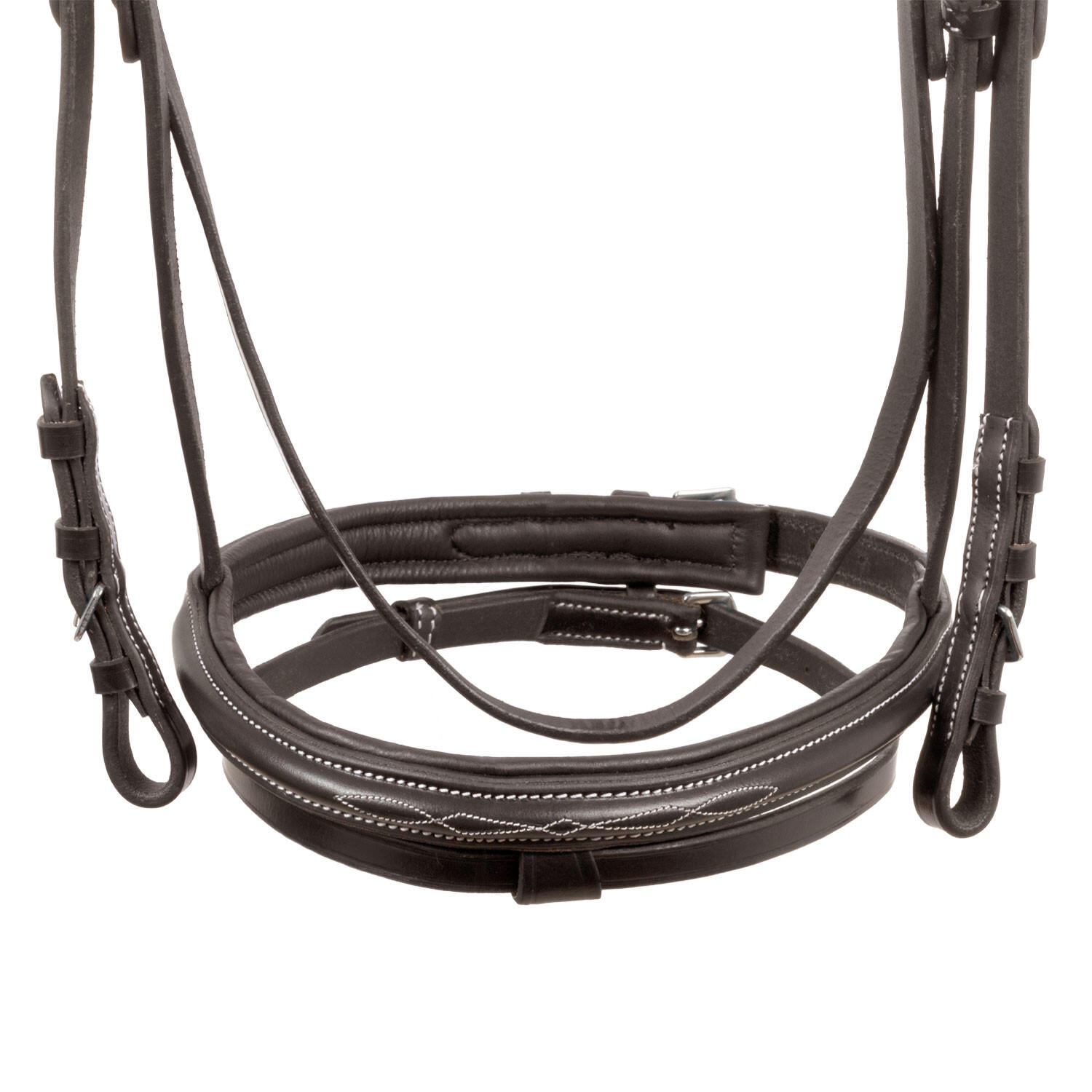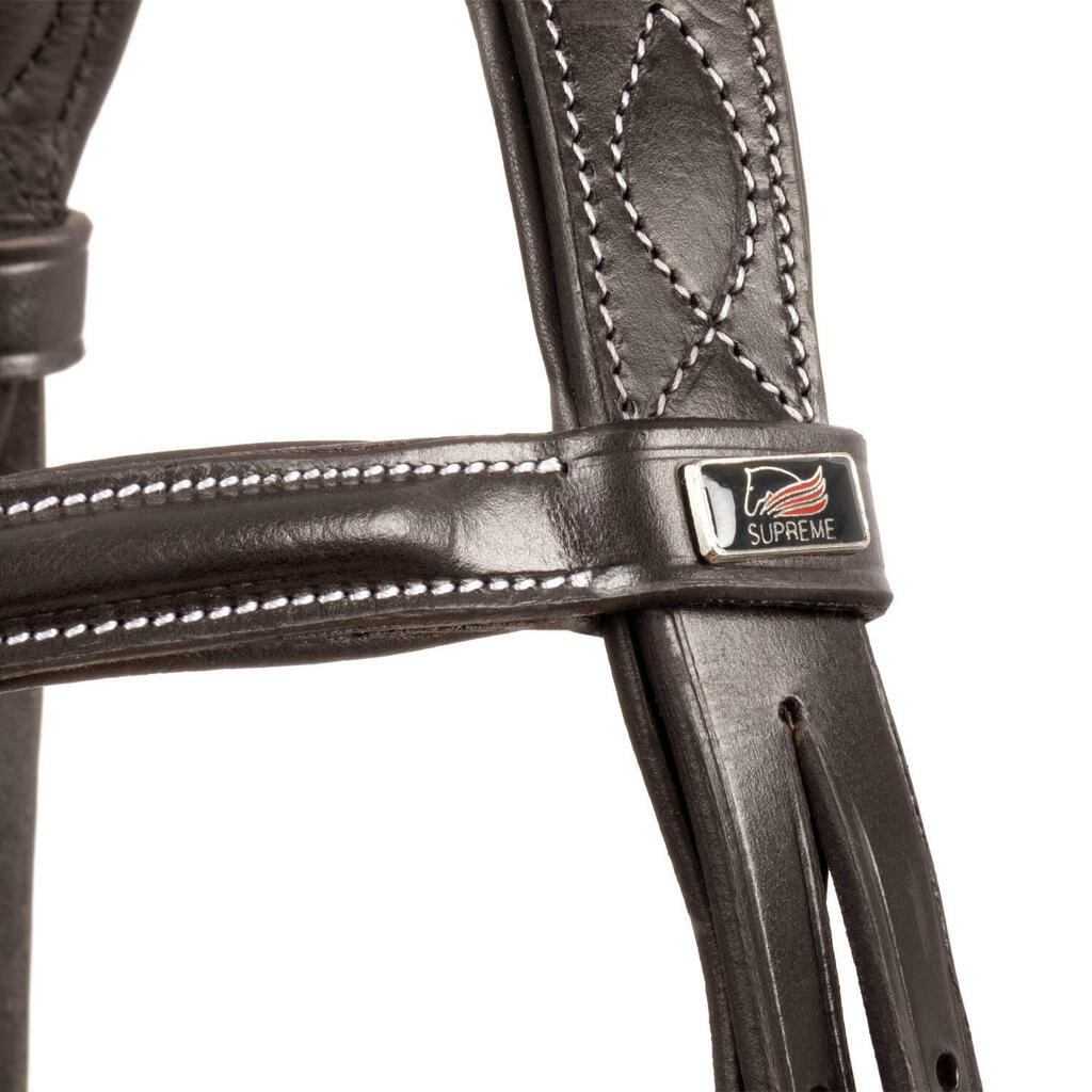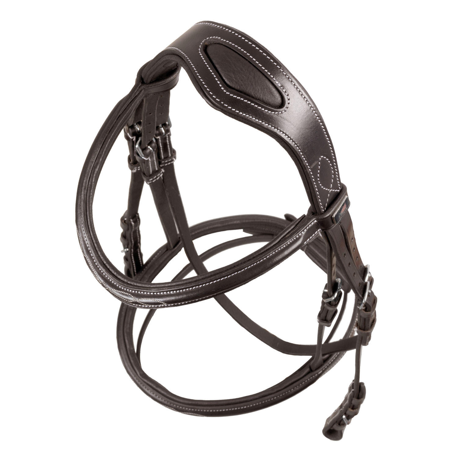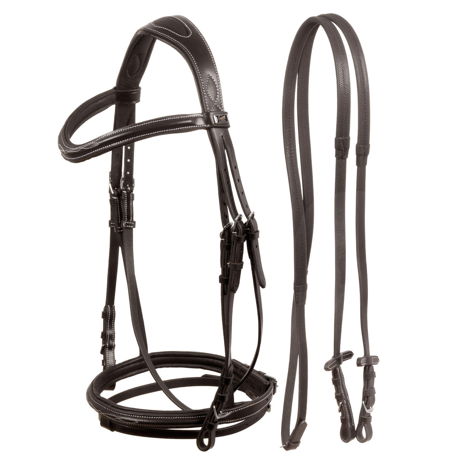 Headstall with contrasting stitching and reins