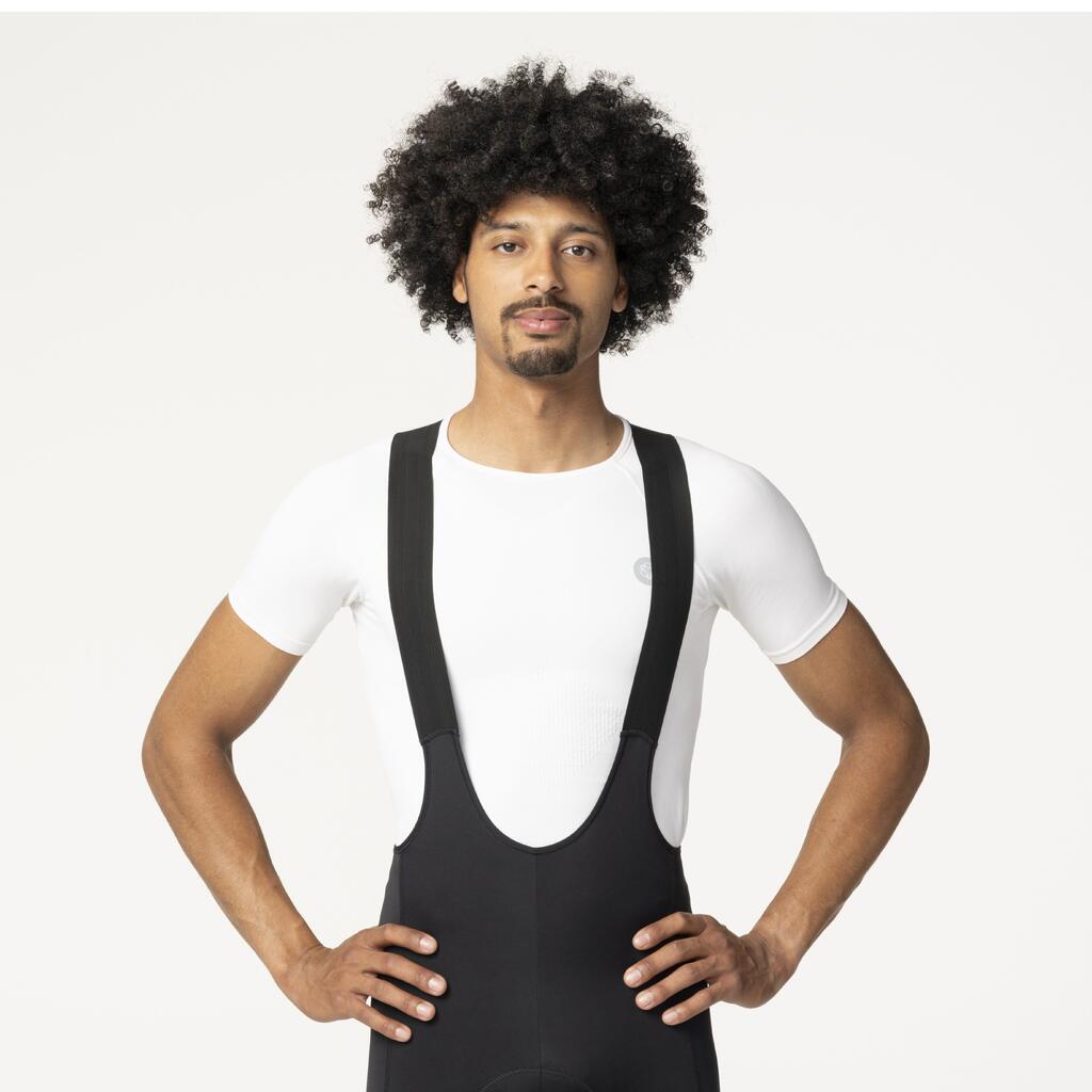 High quality fabrics offer compression and breathability. Laser-cut legs with integrated silicon gripper. Seamless comfortable elastic bibs with ventilation.