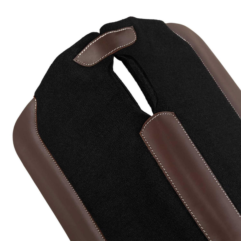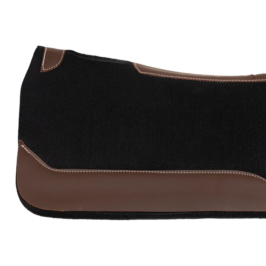 Western saddle pad in felt and neoprene with leather inserts. It absorbs shocks and minimizes saddle shifts.