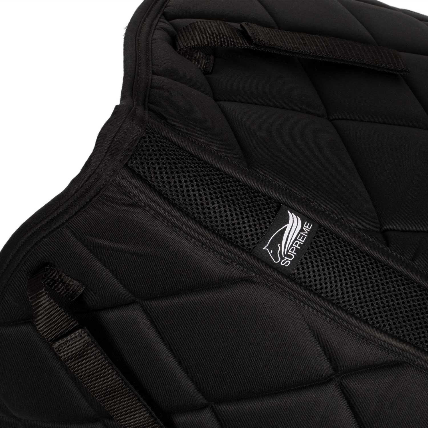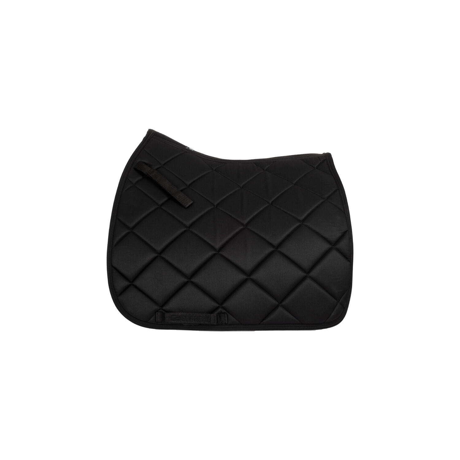 Lightweight and comfortable polyester dressage saddle pad with diamond quilting. The anatomical shape guarantees maximum fit and freedom of movement.