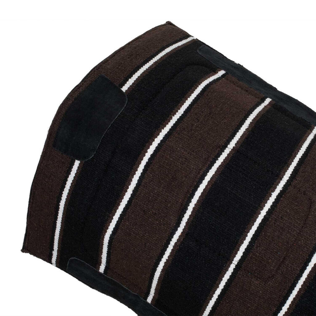Western saddle pad in navajo fabric and felt with leather reinforcements. Practical and functional.
