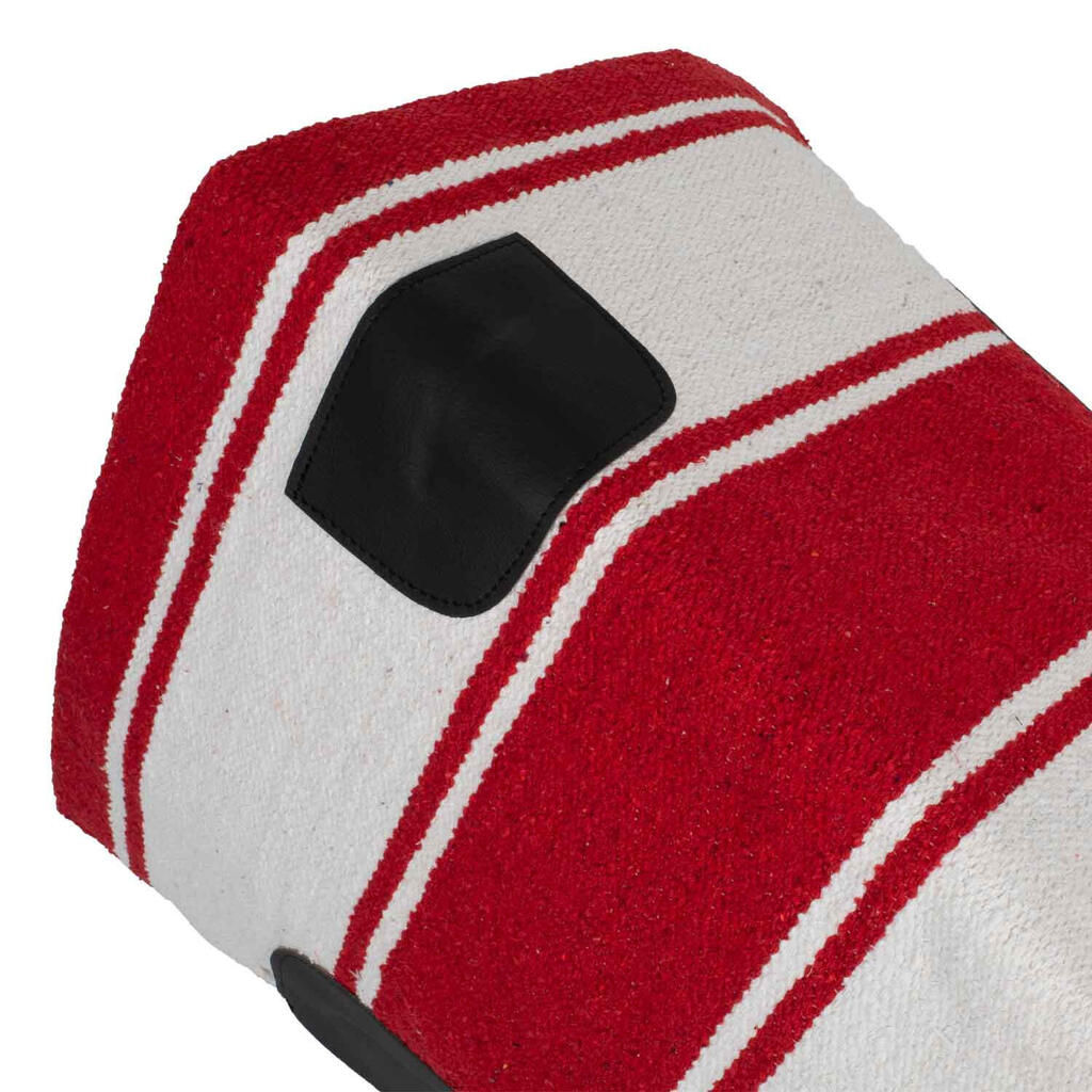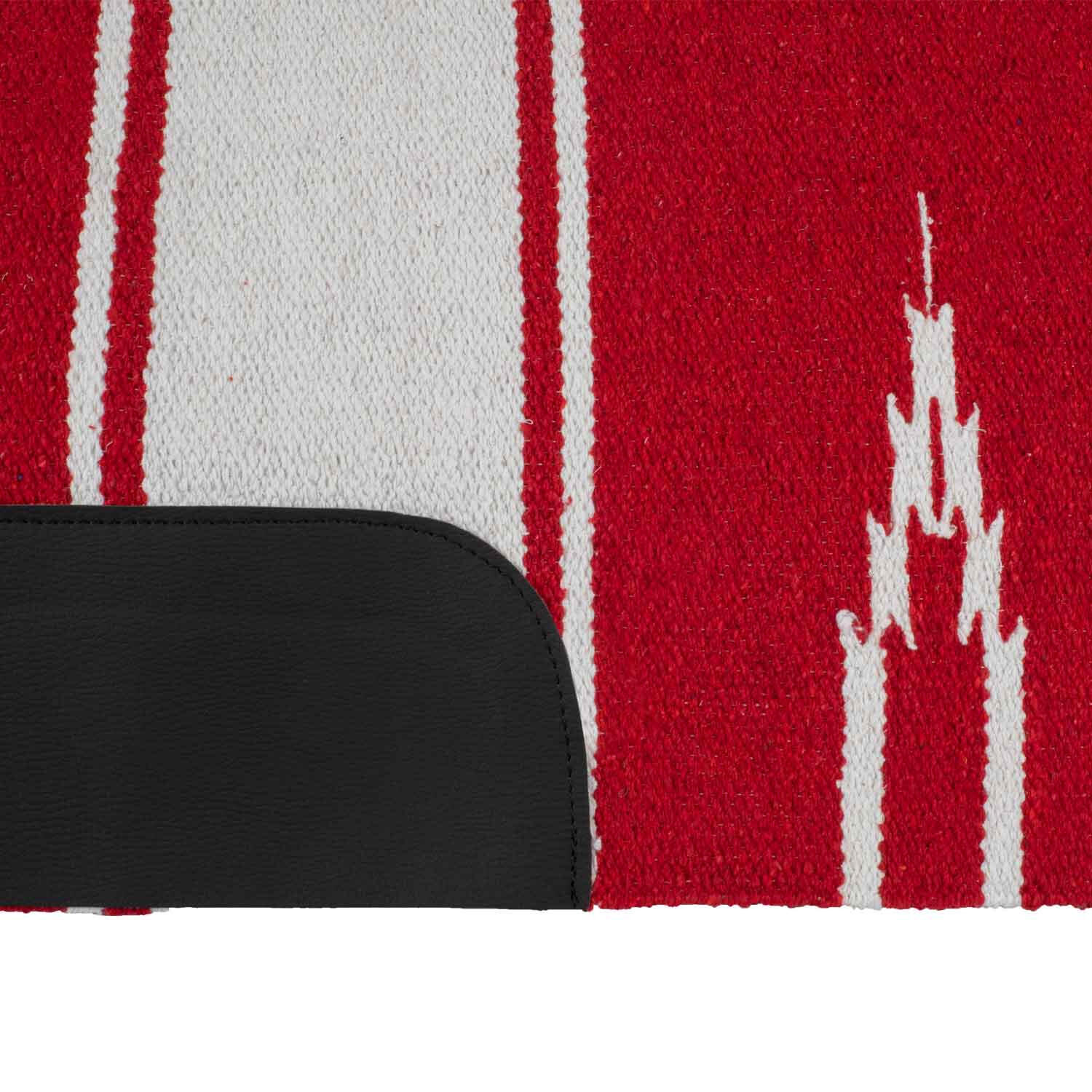 Navajo blanket with leather inserts. Practical and functional.