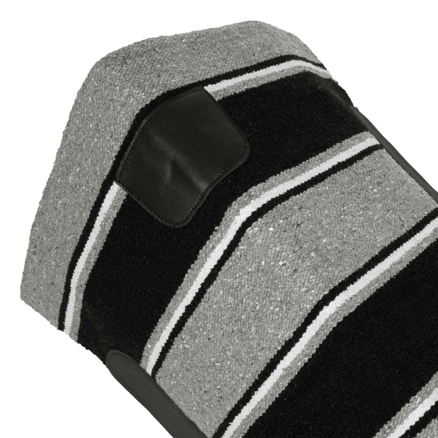 Navajo blanket with leather inserts. Practical and functional.