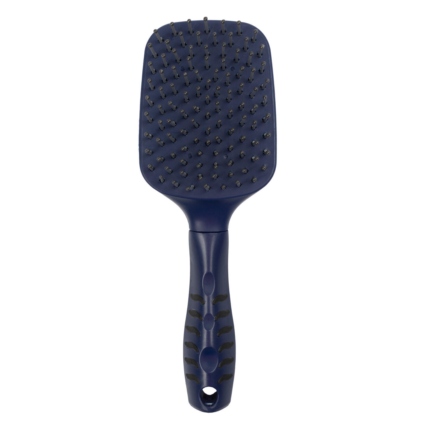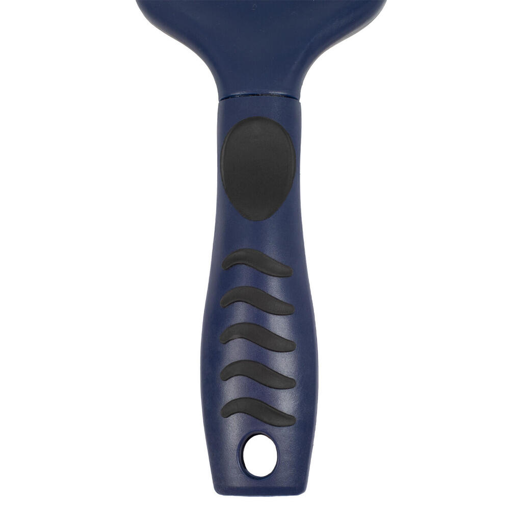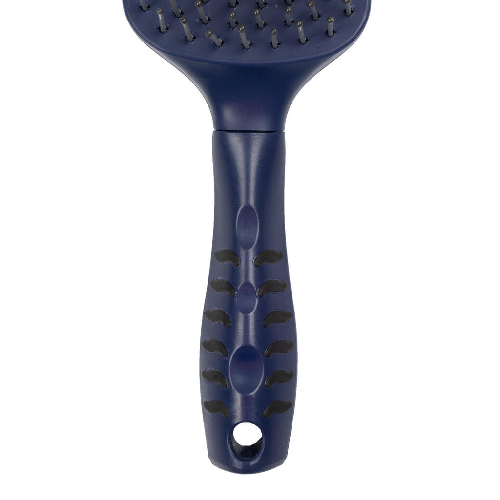 Brush for tail and mane with ergonomic handle.