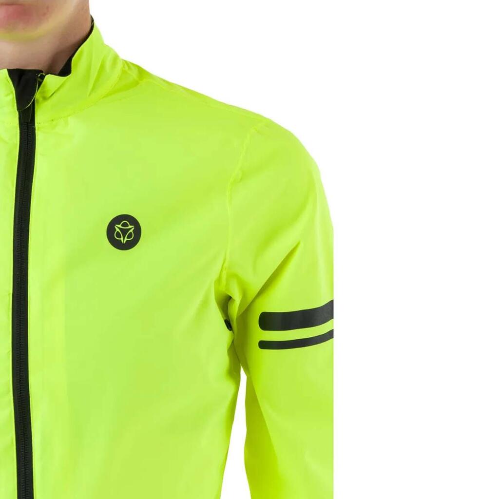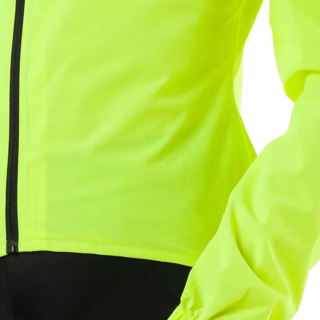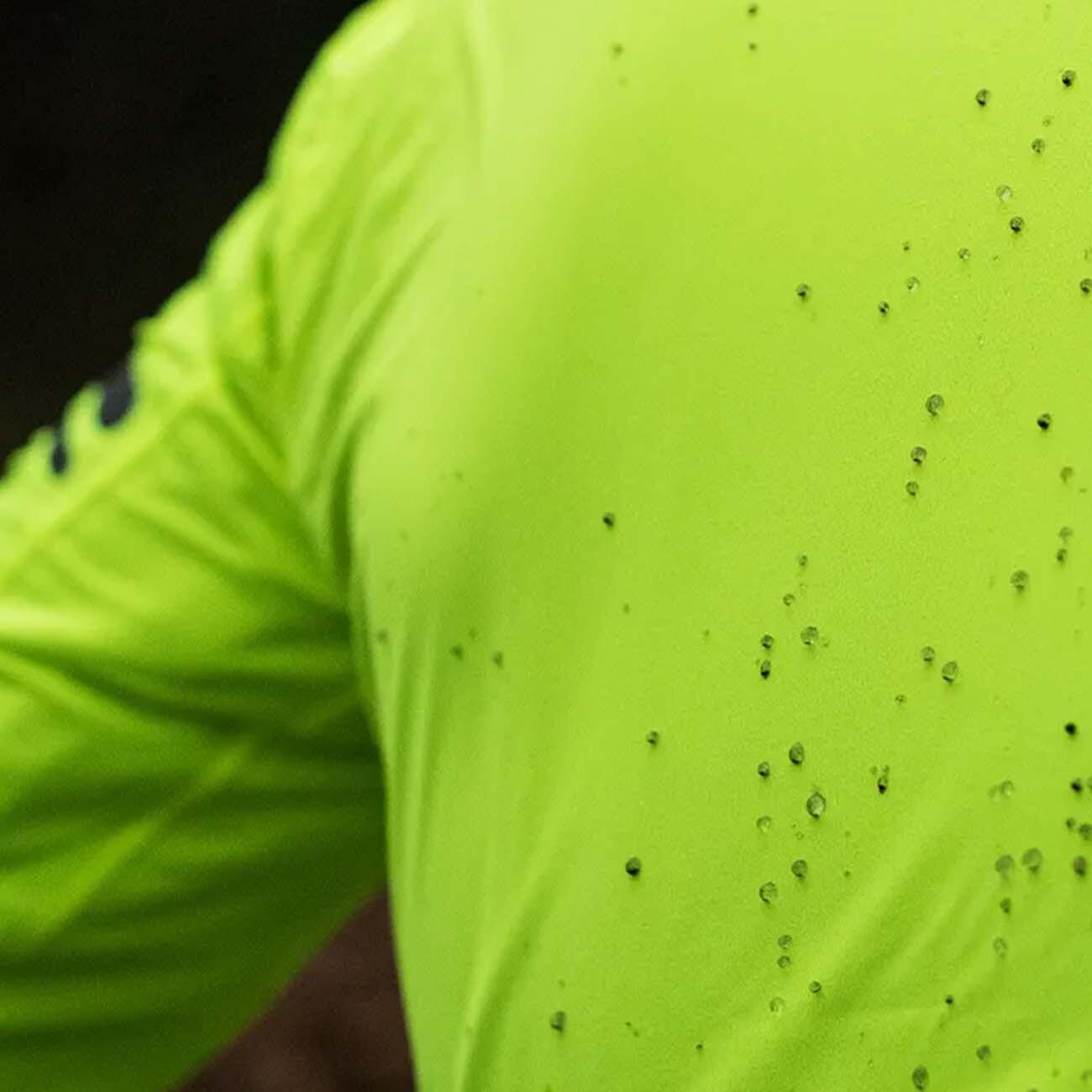* With pre-shaped sleeves that protect the hands against rain in the cycling position.
