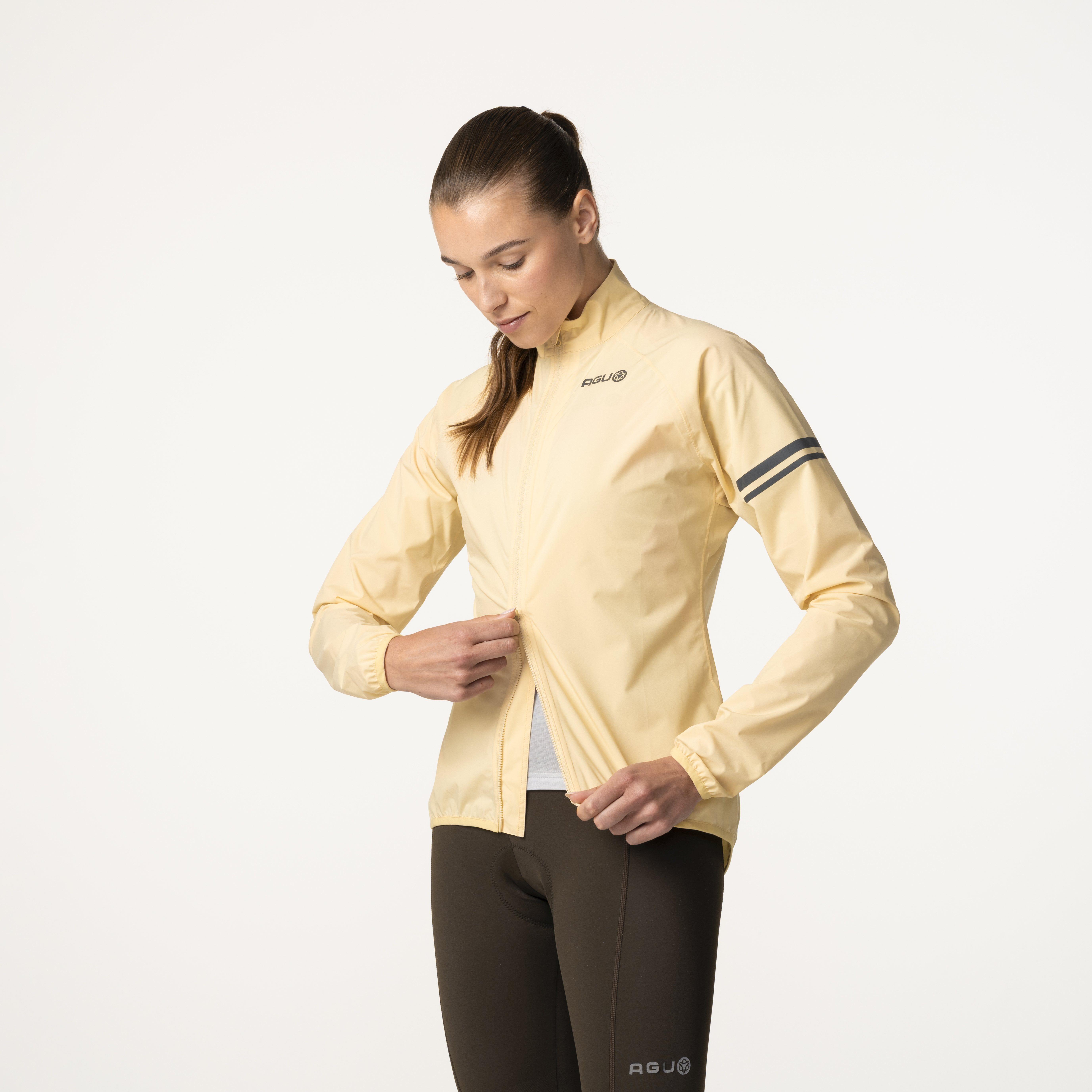 - The waterproof jacket comes with a storage bag to make it easy to take with you in your back pocket or handlebar bag.