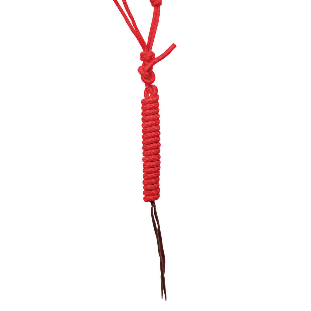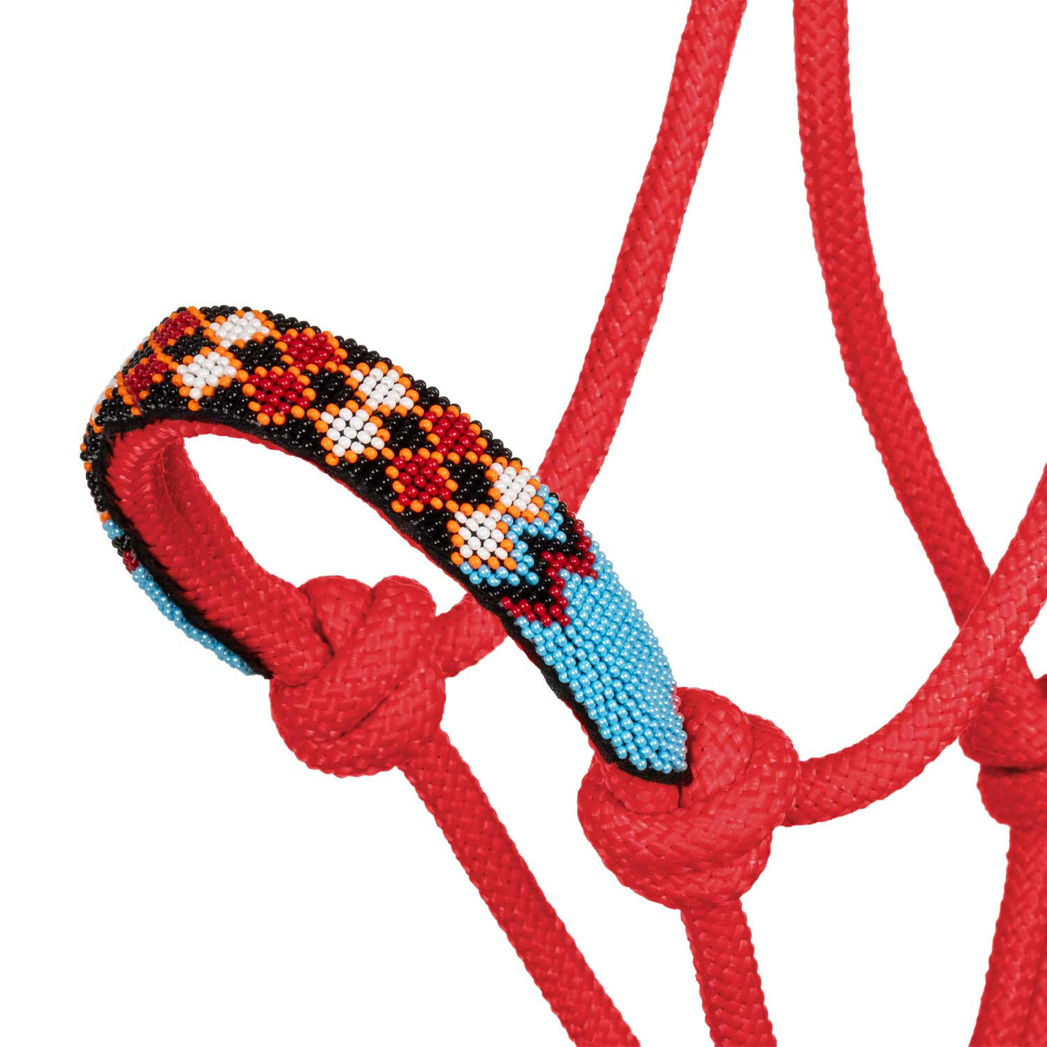 Knotted rope halter. Decorated with colorful beads.