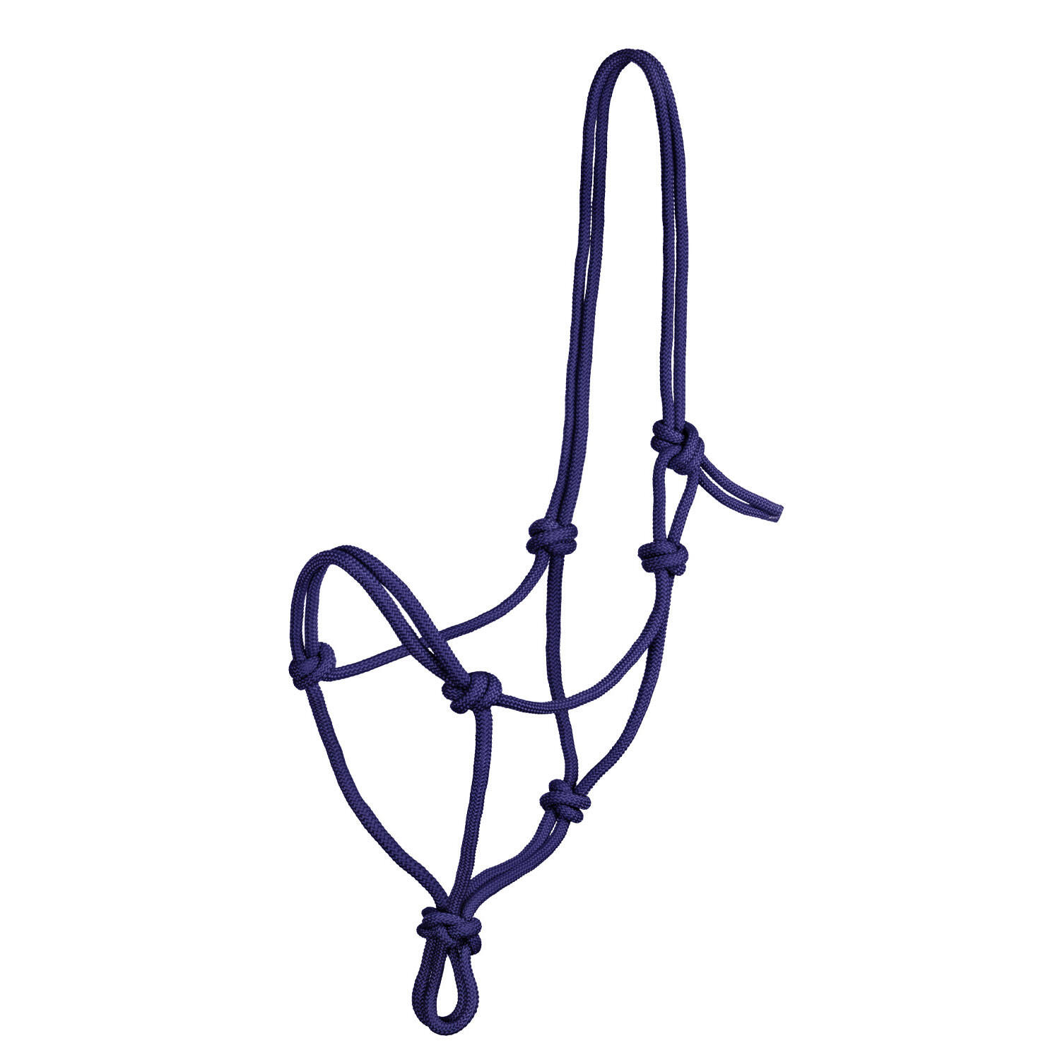 Braided rope halter with adjustable knots.