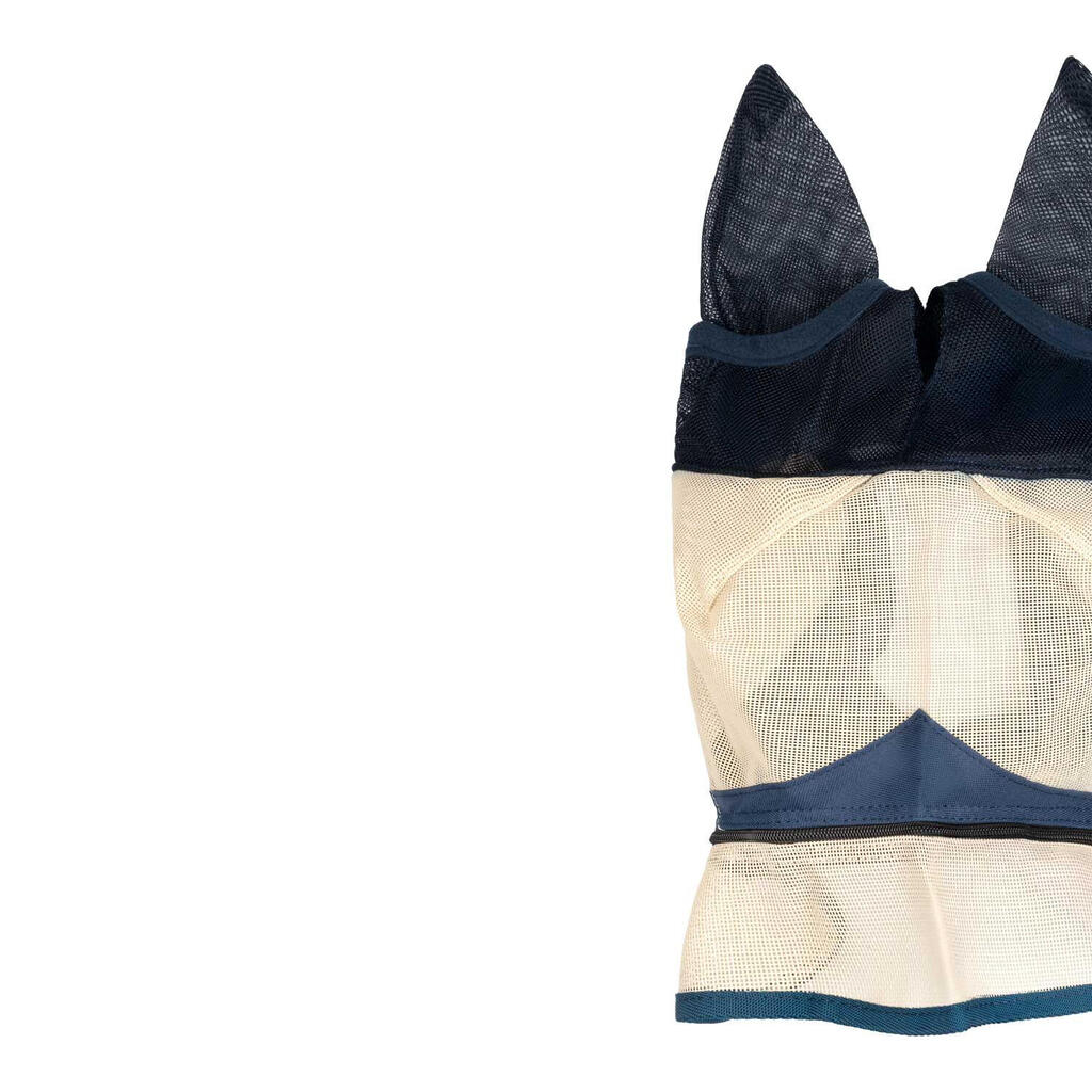 Fly mask with ear covers made in PVC with Velcro closure and zipper.