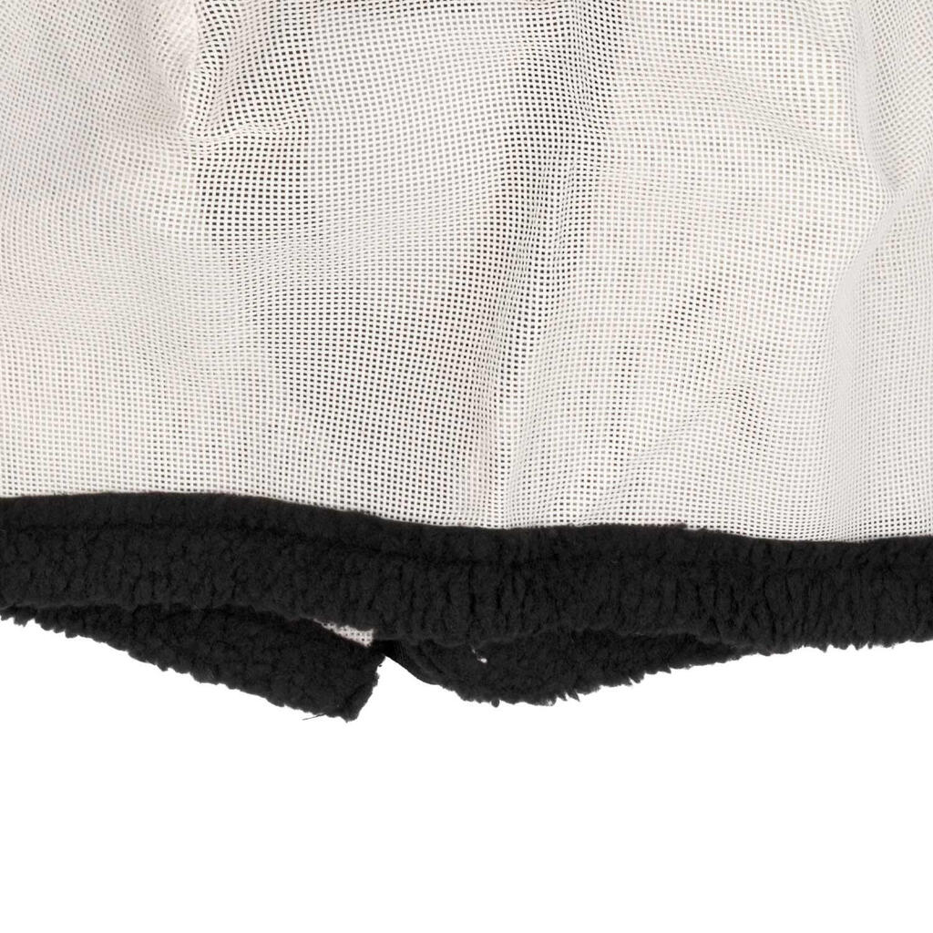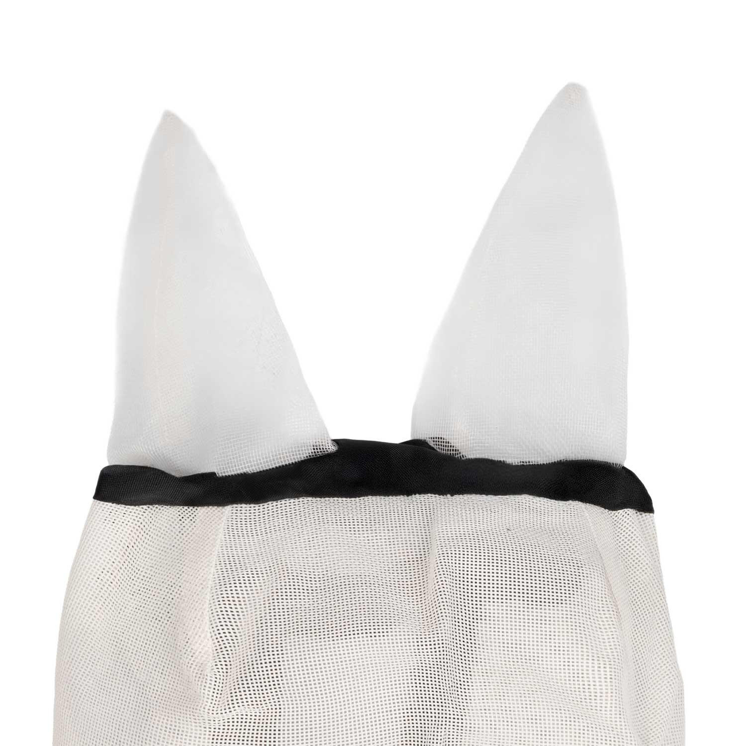Nylon fly mask with ear covers and Velcro closure.