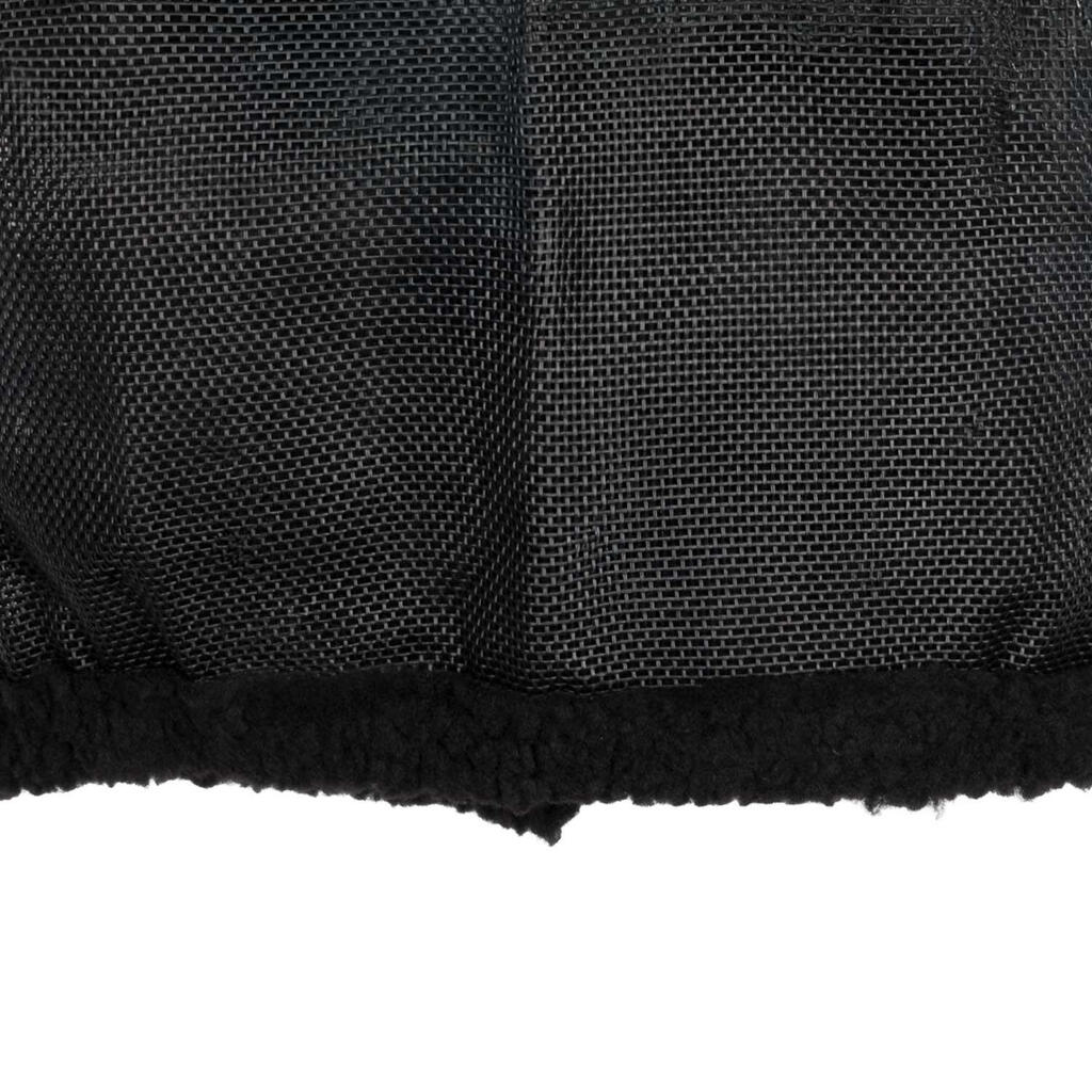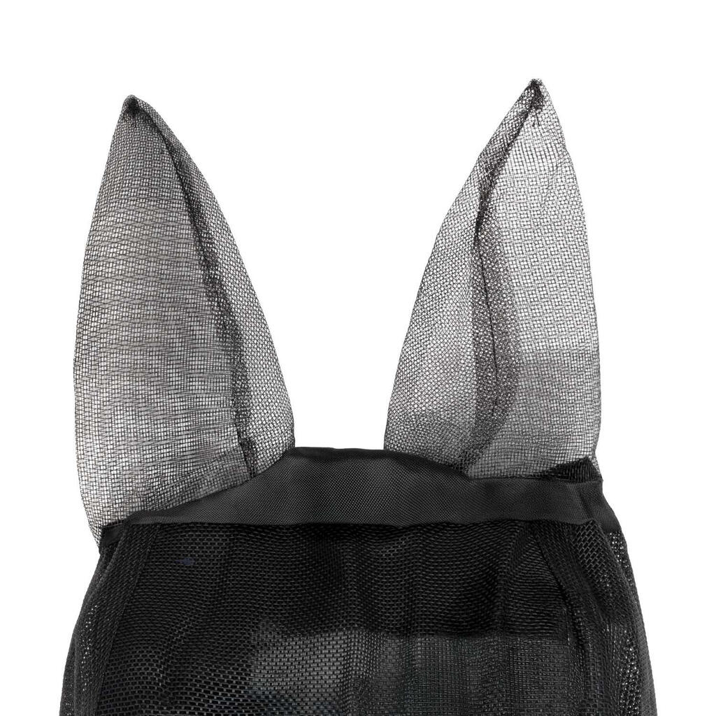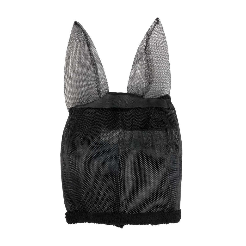 Nylon fly mask with ear covers and Velcro closure.