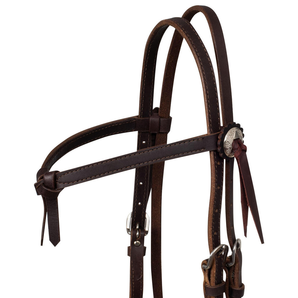 Western bridle in soft greased leather with braided browband and stainless steel buckles.
