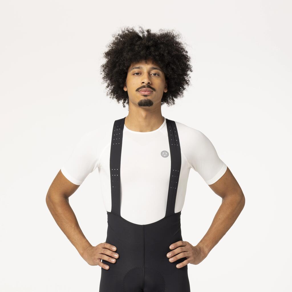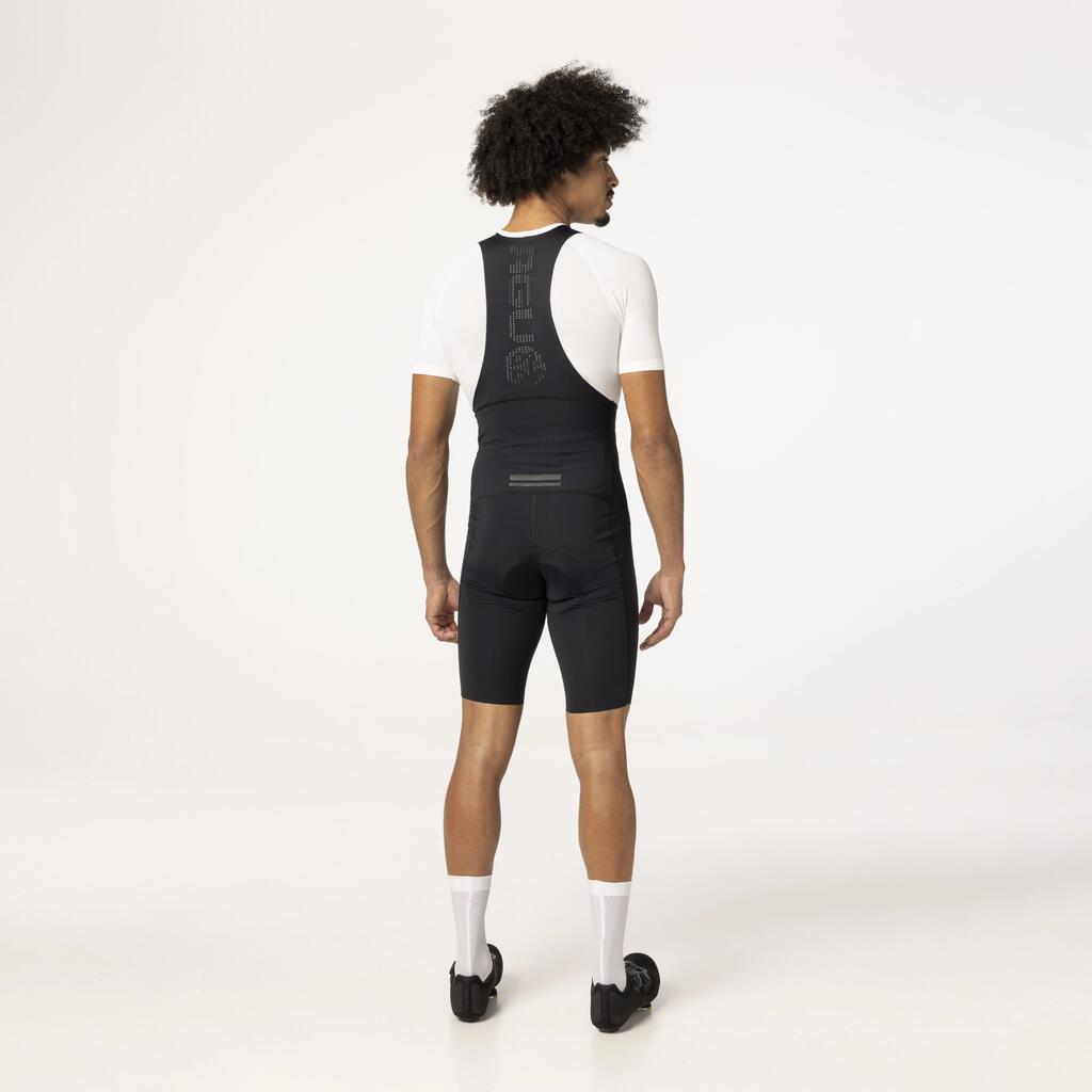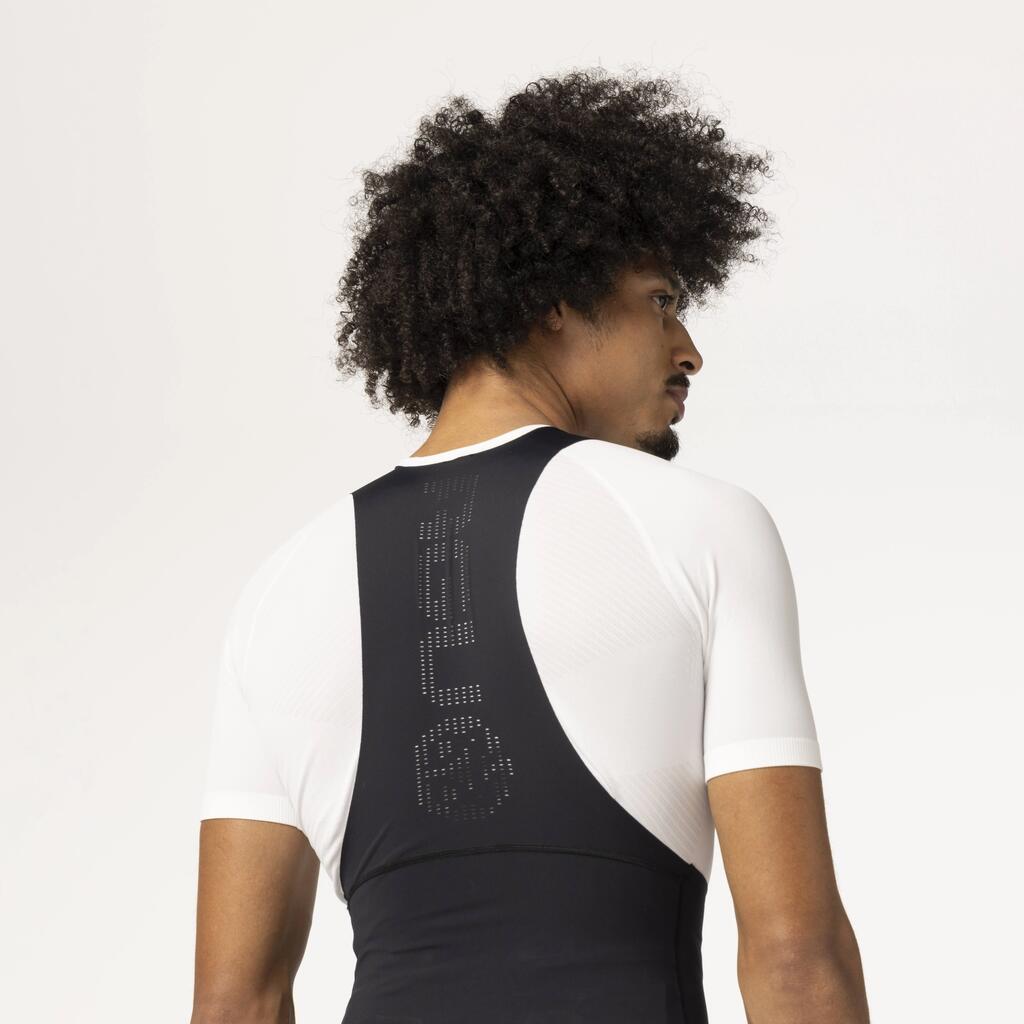 * The new bib strap construction ensures improved pressure distribution and freedom of movement while cycling. The construction is made of laser-cut, seamless, smooth stretch fabric that fits closely to your body without cutting into the skin. The straps also feature small ventilation holes to aid temperature regulation.