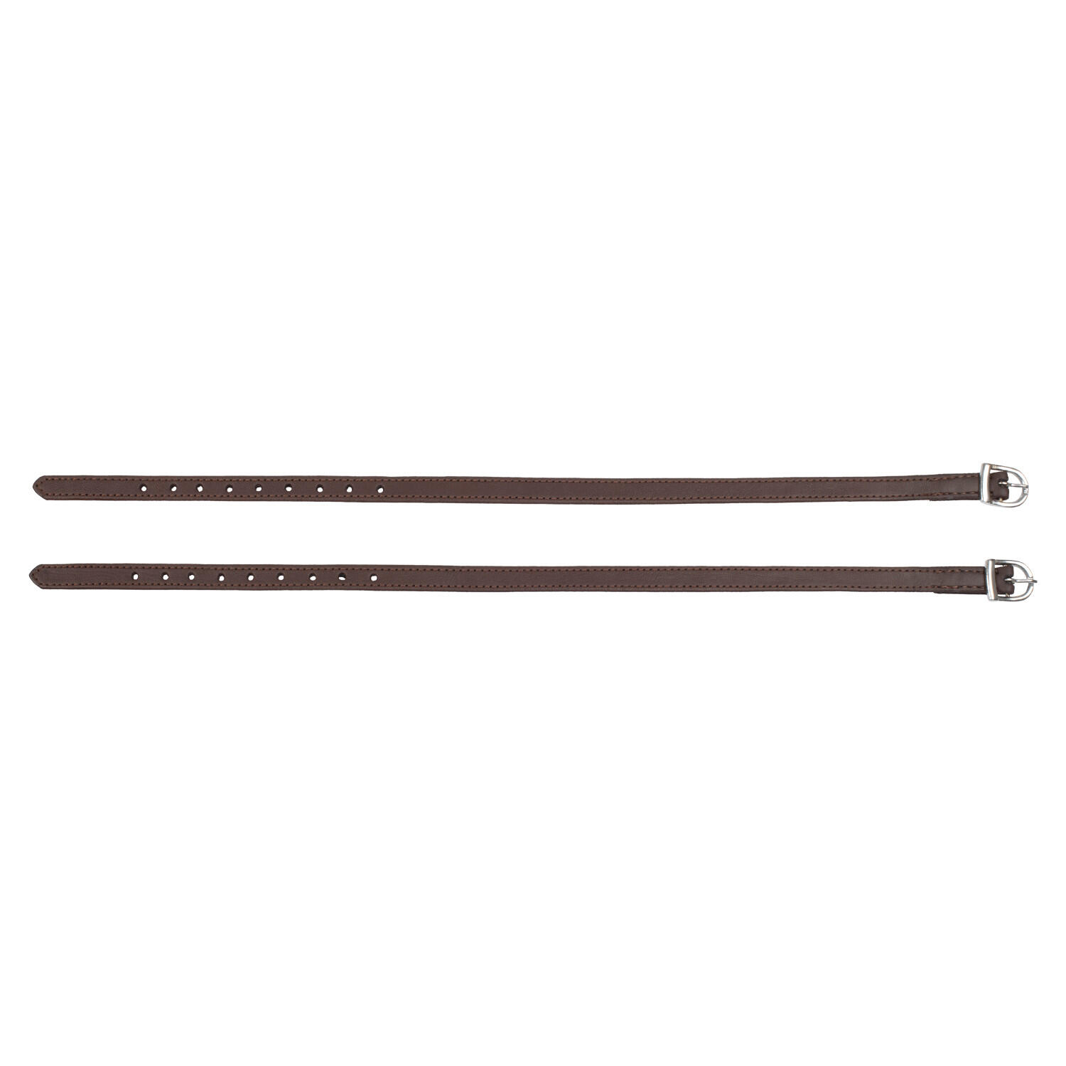 Spur straps in soft leather with steel buckle and nylon interior. Convenient and easy to use.