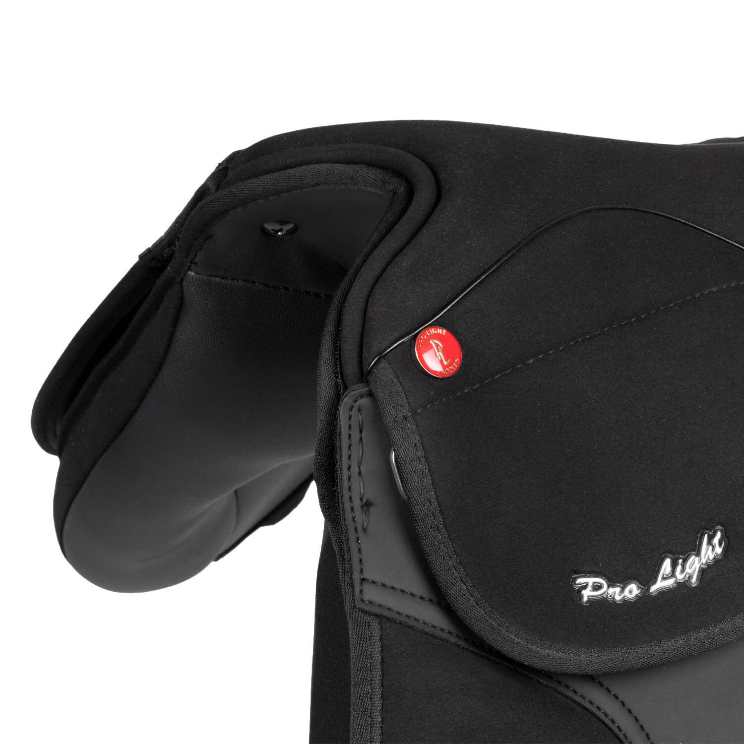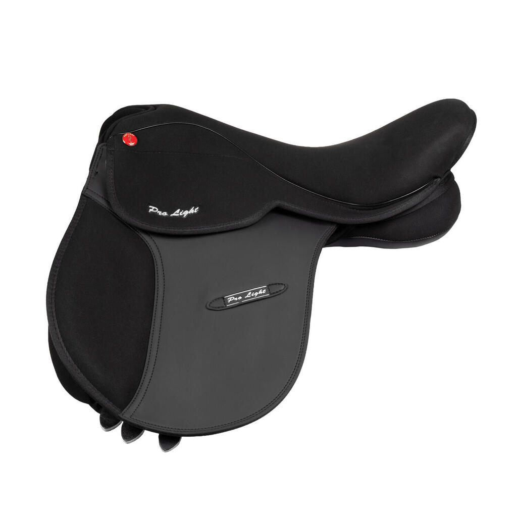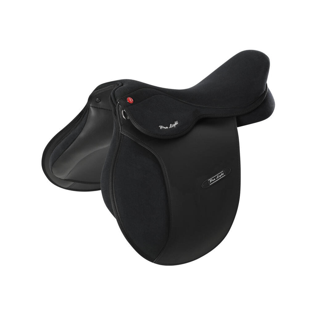 Jumping saddle in suede PU leather, adjustable knee rolls and nylon tree. Ideal for both groundwork and show jumping.