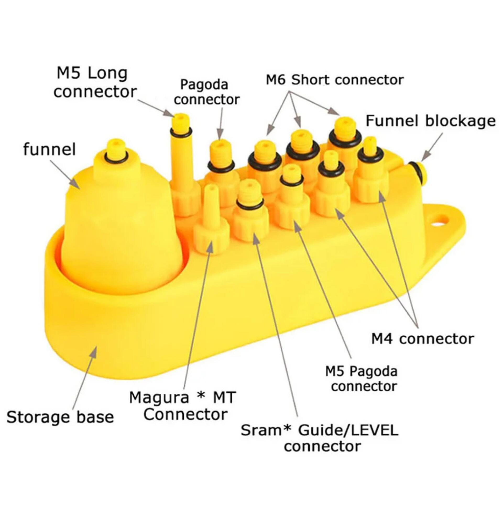 It makes brake bleeding cleaner, easier and more efficient thanks to a wide funnel and multi-brand connectors.