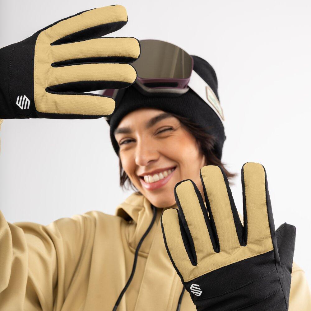 Voss Camel snowboard and ski gloves with Sure-Grip non-slip palm, double lining, and adjustable Velcro cuffs Waterproof and durable