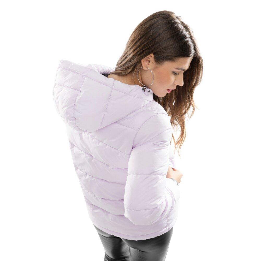 Women's puffer jacket with Sorona® Aura 320 g/m² insulation, ultra-light and ultra-soft fabric, adjustable hood and zip pockets for optimal thermal comfort.