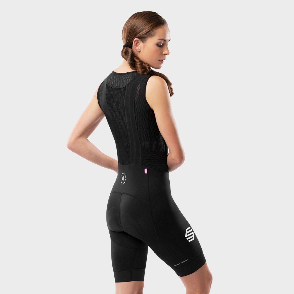 BX Time Trial bib shorts for female cyclists with Strato+ chamois, high-compression materials, and UPF 50 rating