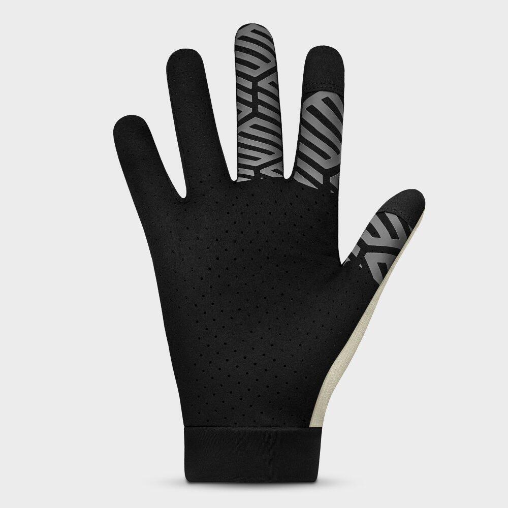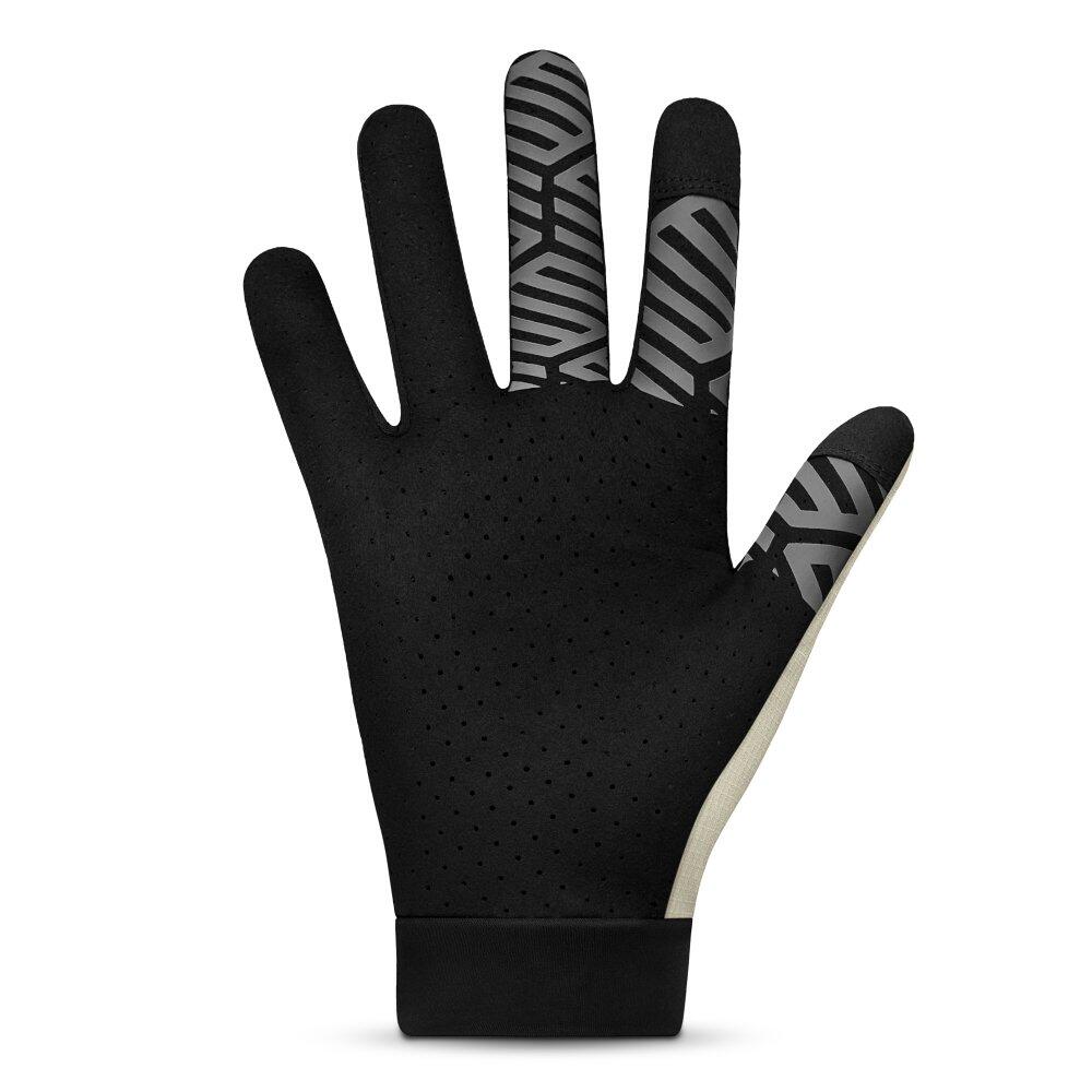 Full-finger gloves for mountain biking. Elastic ripstop fabric on the back of palm and microperforated palm fabric. Elastic cuffs and silicone prints on fingers for enhanced grip. Touch screen compati
