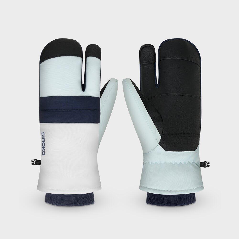 Men & Women 3-finger lobster ski mittens Glisse White White