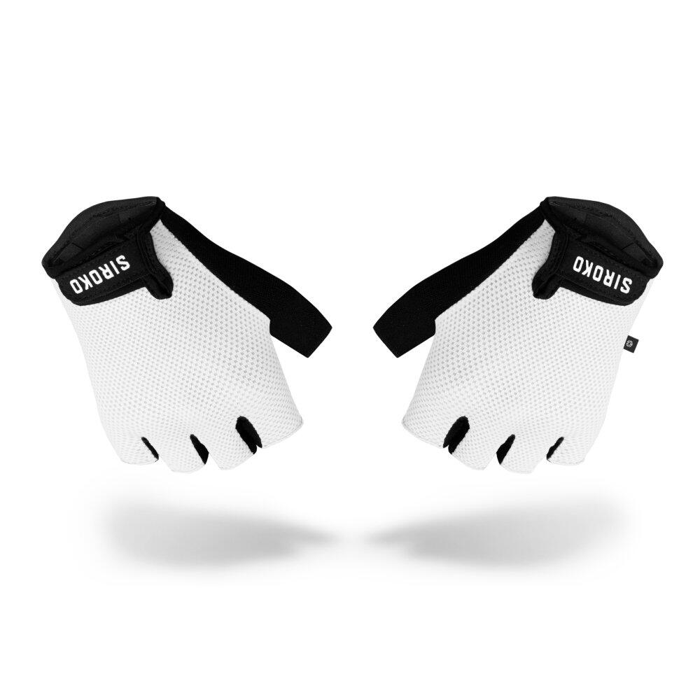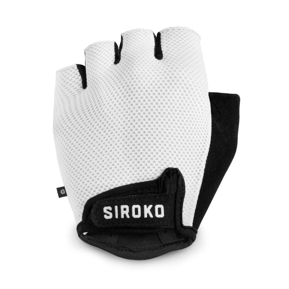 Siroko Aero White cycling mitts with palm padding, breathable fabric, and adjustable wrist closure for optimal comfort